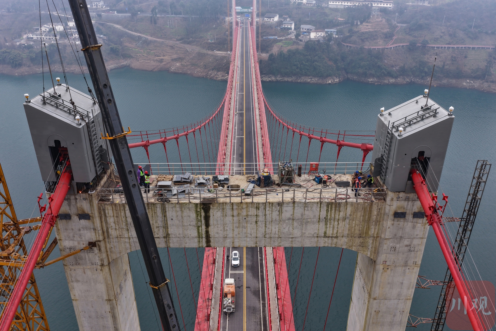 C视觉丨四川阿坝第一座悬索桥主塔塔冠完成安装