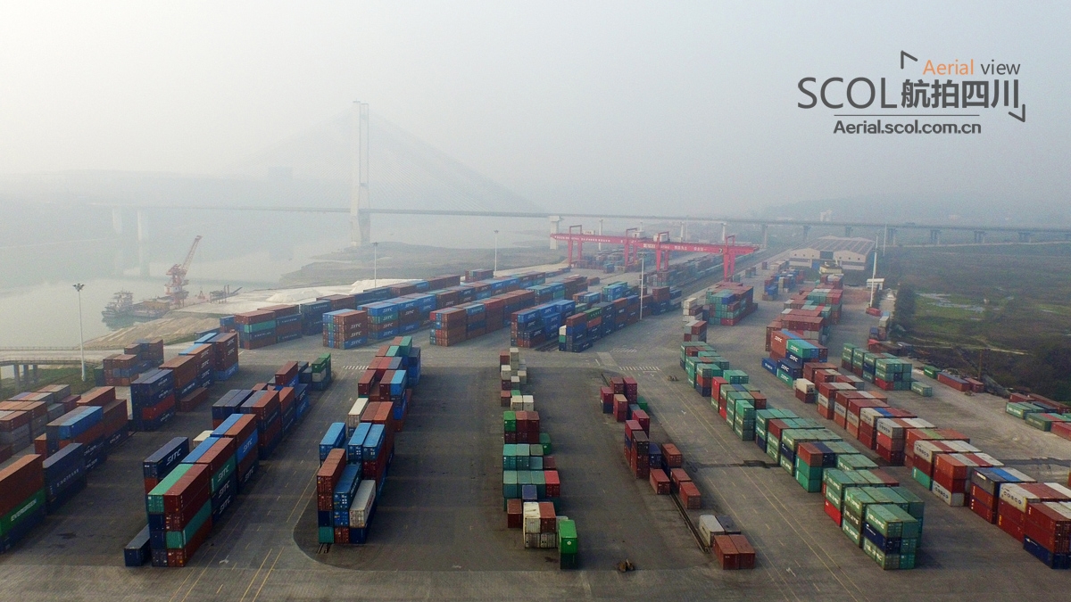 紧邻高坝的四川第一大港泸州港一角,春节停工放假,但仍有大量货物堆积待运。