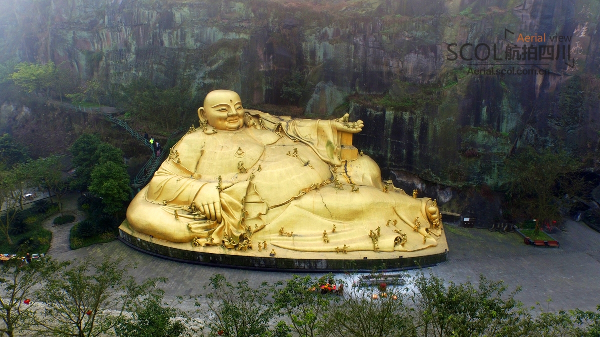 洞窝峡谷景区的卧佛像,资格的土豪金,确实有点丑。