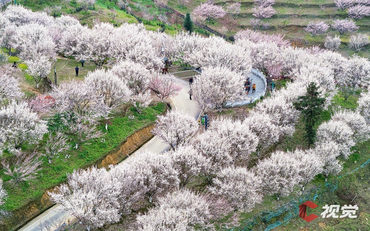 绵阳市平武县平通羌族乡印象梅林的万亩青梅花迎来盛花期。C视觉 胡宇 摄