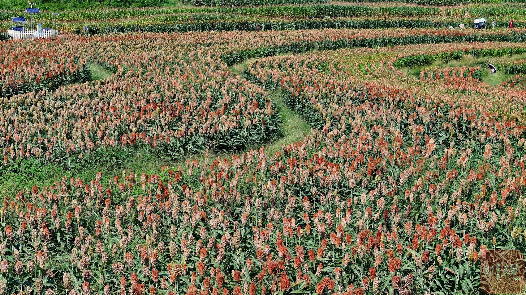 由于今年气候适宜,高粱提前泛红,高粱田已呈现出红、橙、黄、绿渐变的奇幻效果。高粱形成的海浪,宛如现实版的“莫奈花园”。