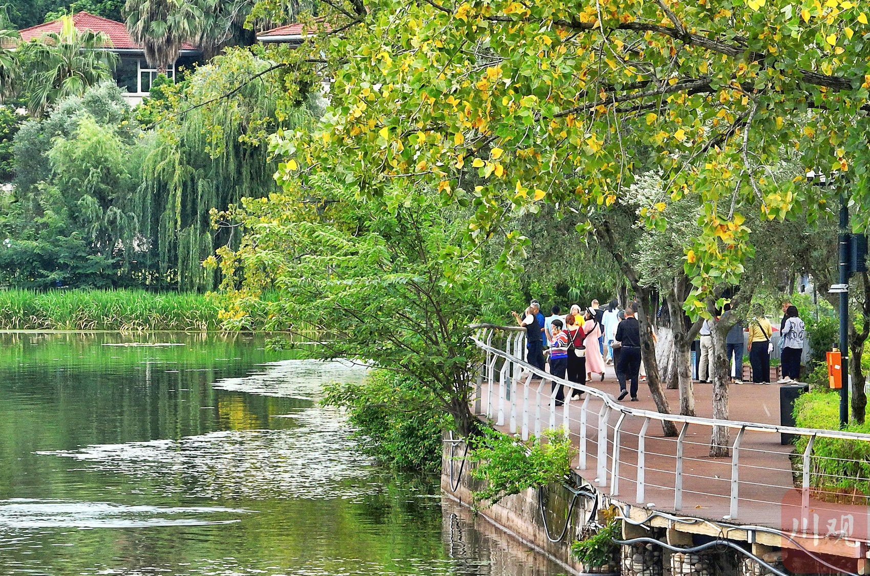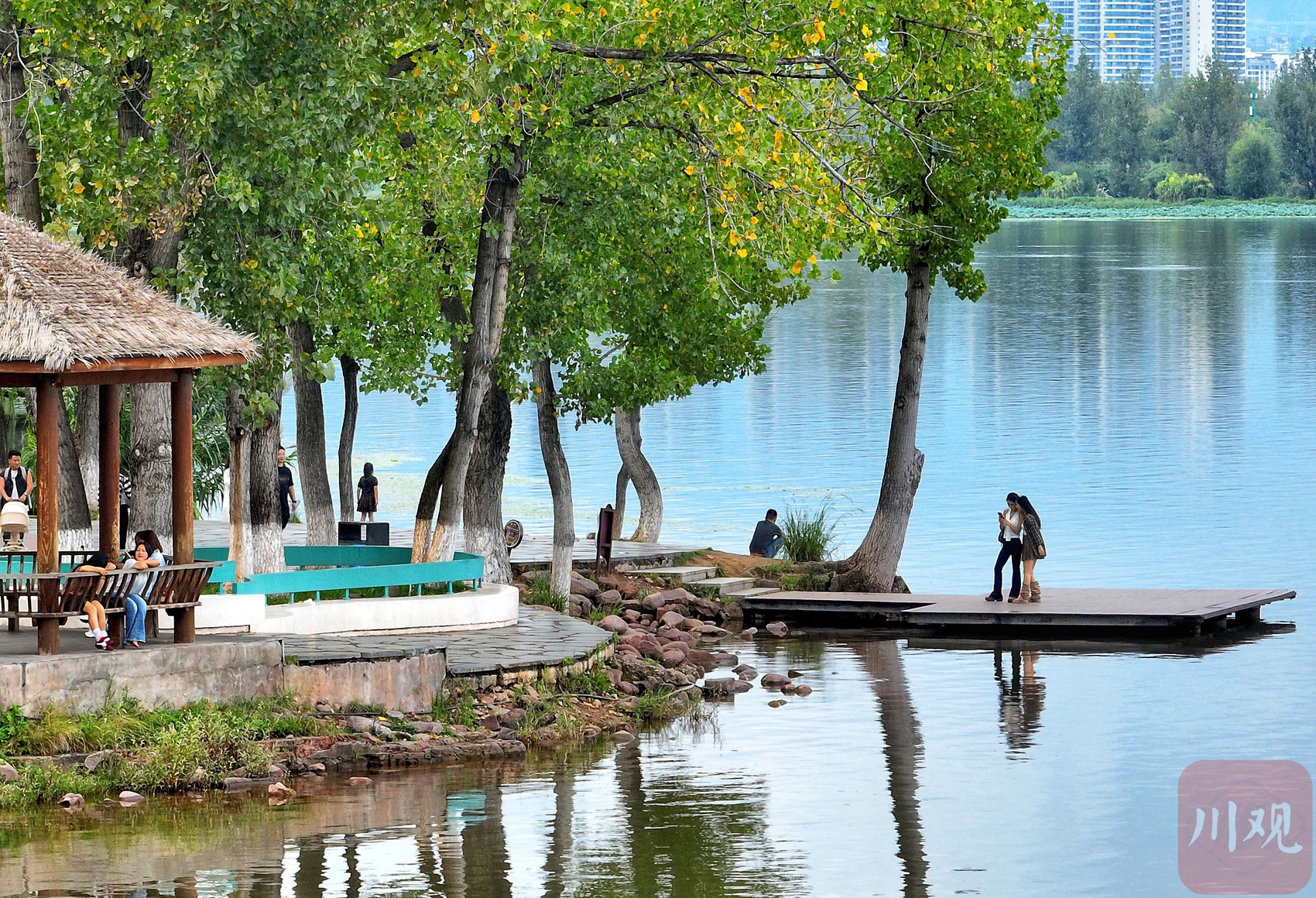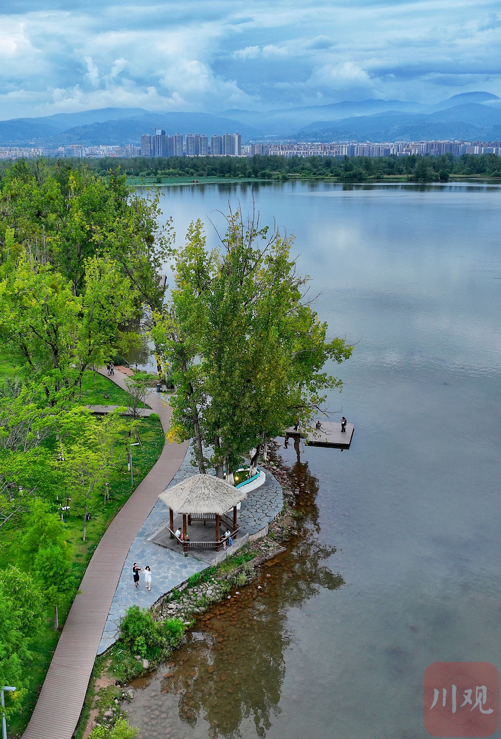 9月8日,秋雨初霁,四川西昌邛海国家湿地公园宛如一幅被秋雨浸润的水墨长卷。湖水与远天交融,湖畔绿道蜿蜒舒展,与雨后愈发葱郁的草木相映成趣。游人或漫步绿道,或驻足观景、拍照,悠然沉浸在这片静谧清新的景致中。