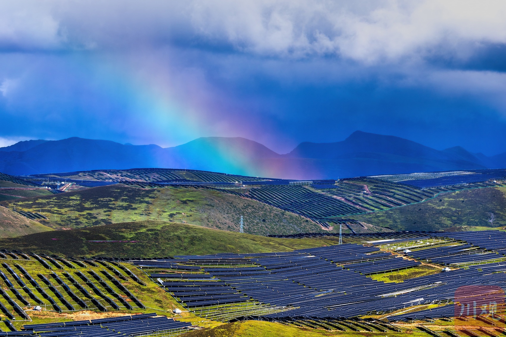 雅江柯拉光伏电站上空的彩虹,闪耀夺目。C视觉签约摄影师 林漫