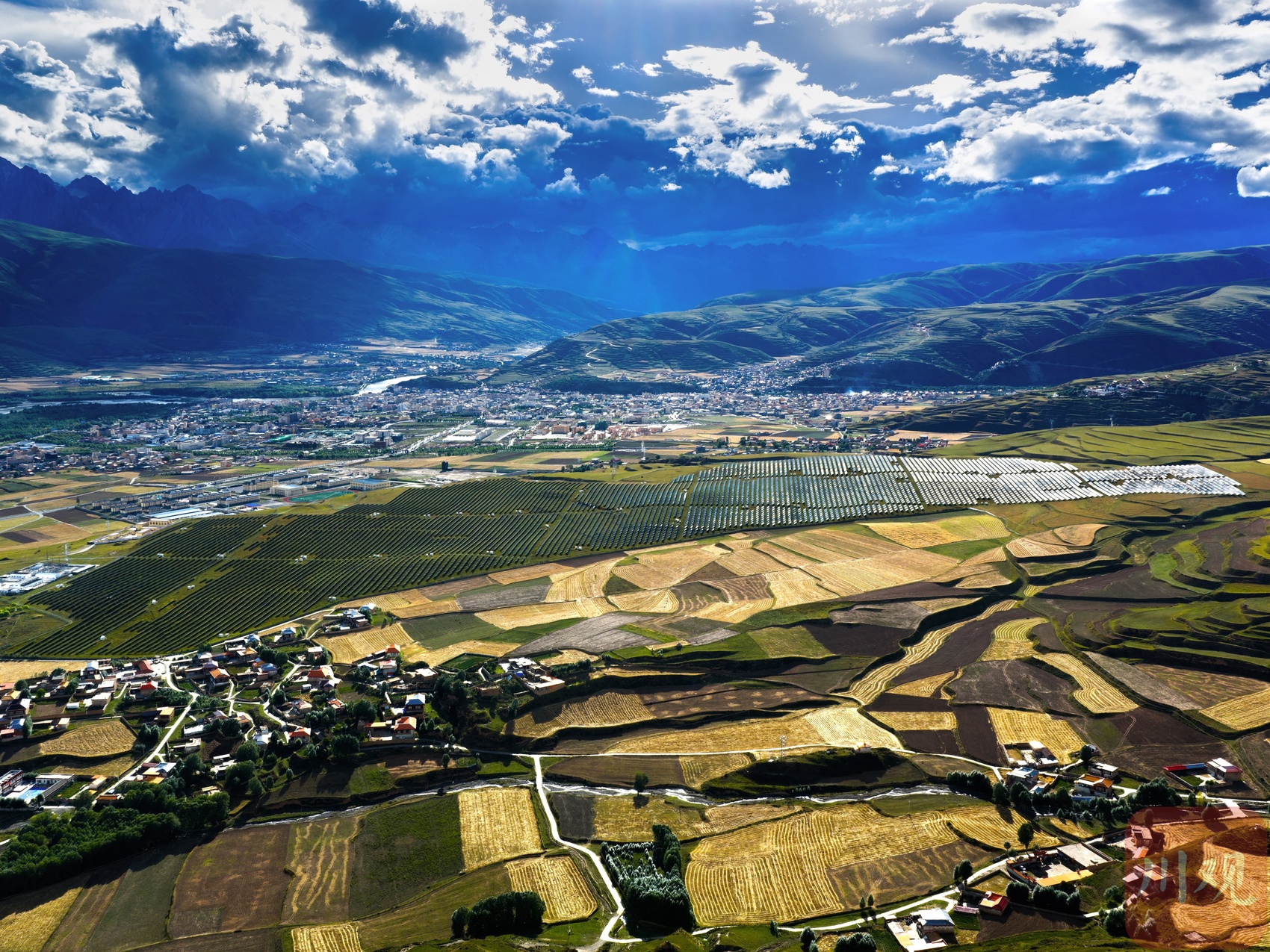 甘孜县火古龙光伏电站与金黄色的青稞田一同镶嵌在川西高原上。C视觉签约摄影师 林漫
