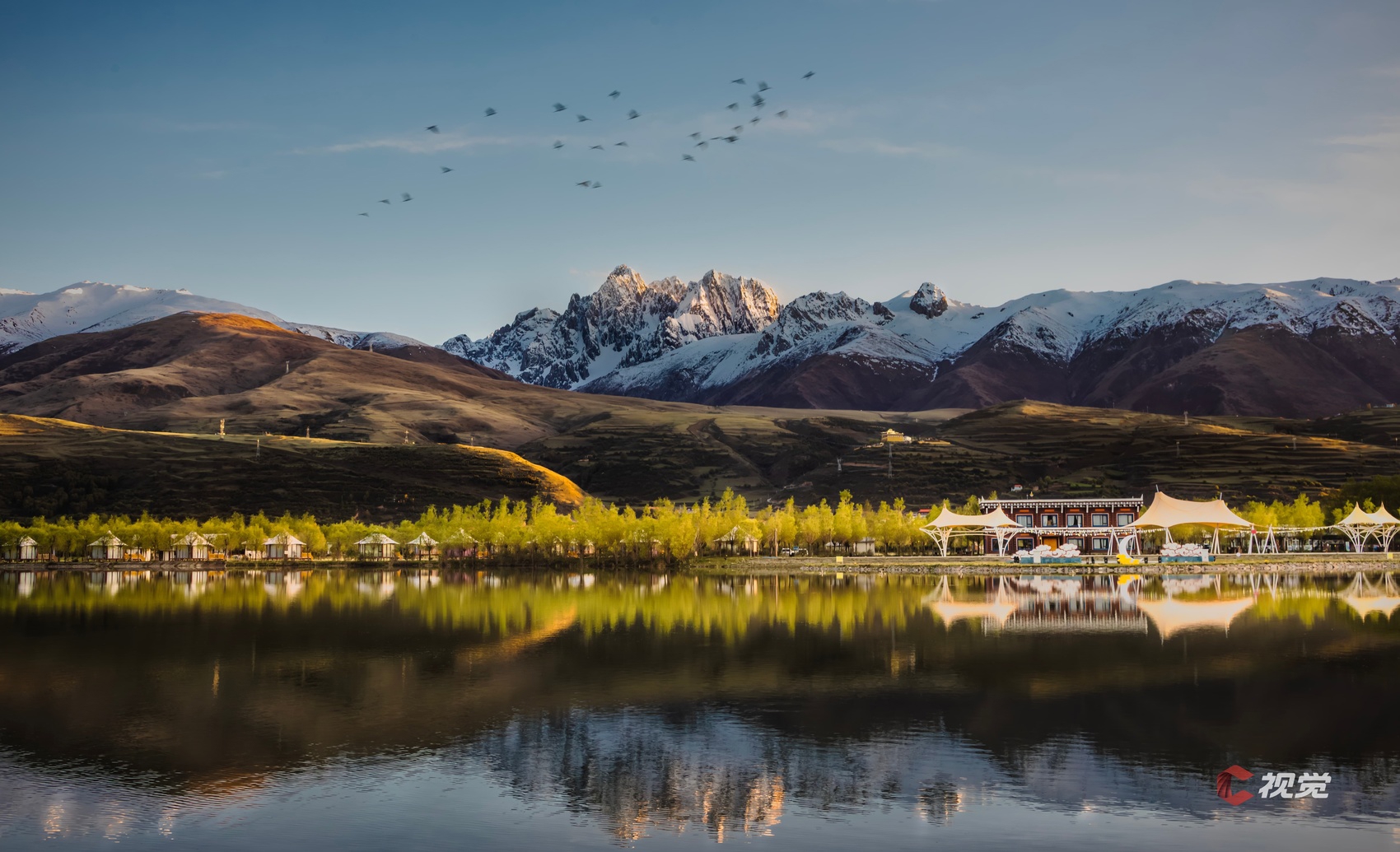 珠牡拉措倒映着朝霞满天,美不胜收。C视觉签约摄影师 李旭