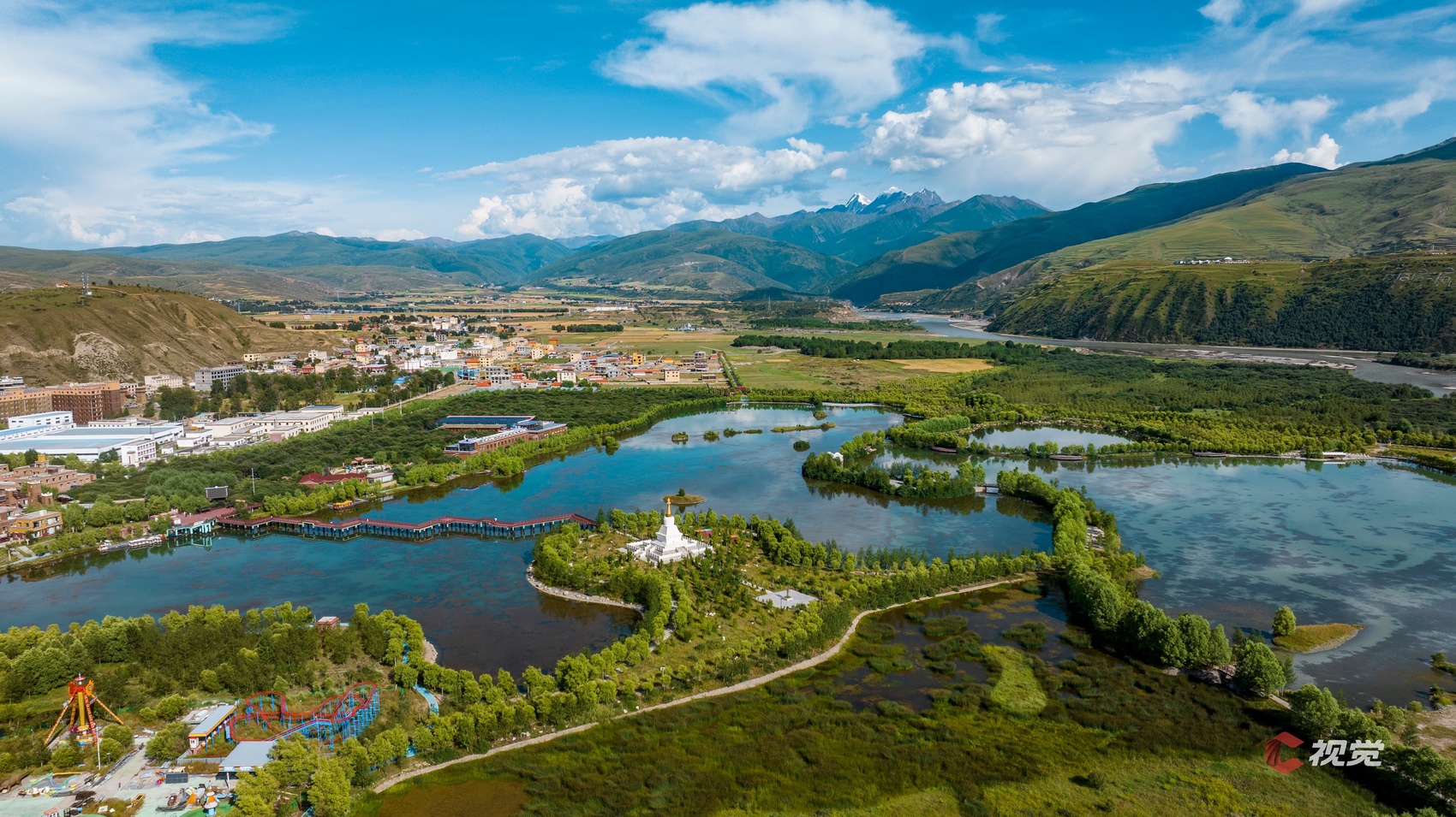 从成都出发,沿G317国道向西行驶,途经马尔康、炉霍县,抵达甘孜县后,可导航至“格萨尔王城”(景区门口设有免费停车场)。格萨尔王城免费对游客开放,城内设有亲水空间、观景平台和慢行系统等设施。游客可沿湖边步道漫步,欣赏湖光山色与王城风貌。