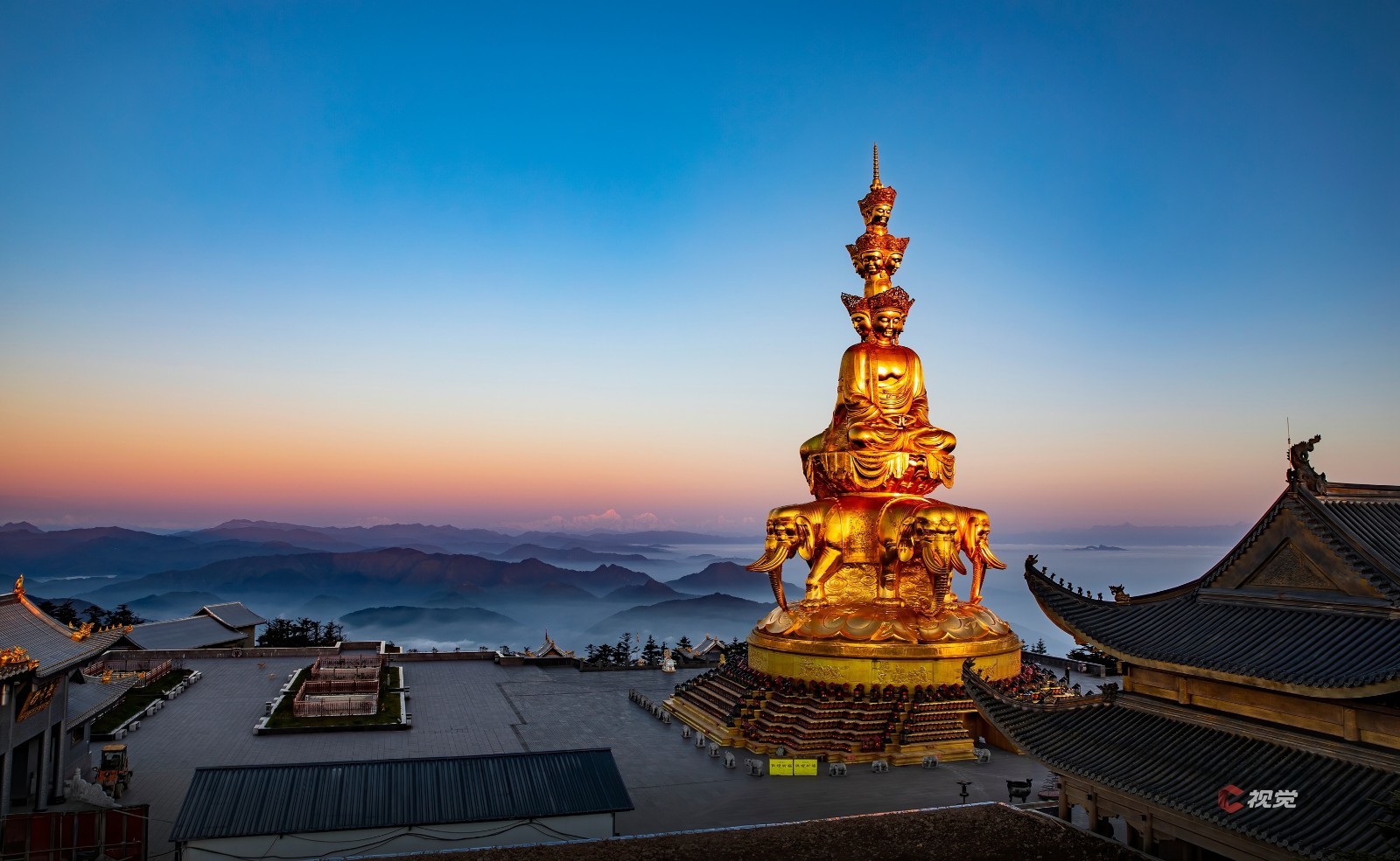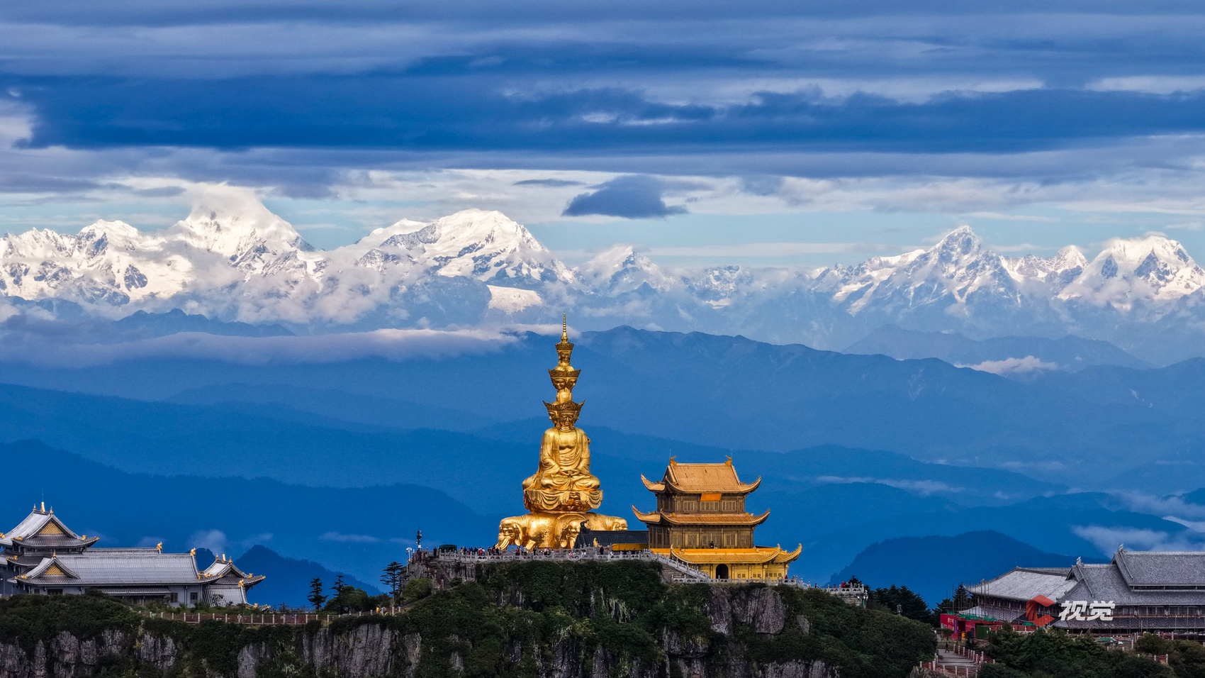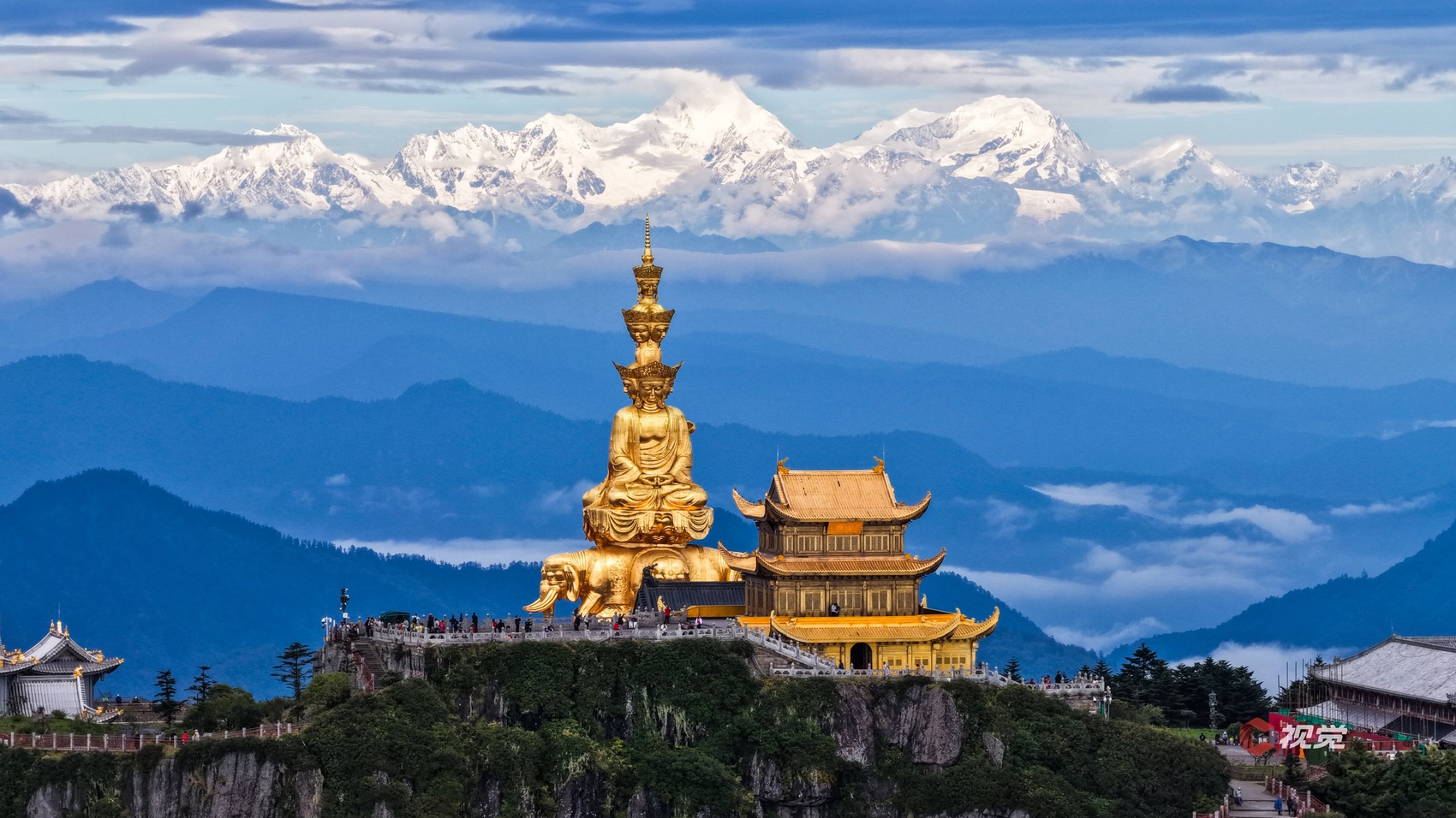 9月,晴朗通透的天气频频眷顾天府大地。在海拔3079米的峨眉山金顶,远眺7556米的“蜀山之王”贡嘎雪山,其主峰犹如银色利刃,雪脊在阳光下折射出冷冽金光,与金顶的鎏金佛殿遥相辉映。两座相隔约200公里的神山,在川西的晴空下共同绘就了一幅“双向奔赴”的壮丽画卷——峨眉山的云瀑成为贡嘎雪冠的天然画框,而贡嘎山的冰川裂隙又仿佛峨眉岩壁的微观复刻。
