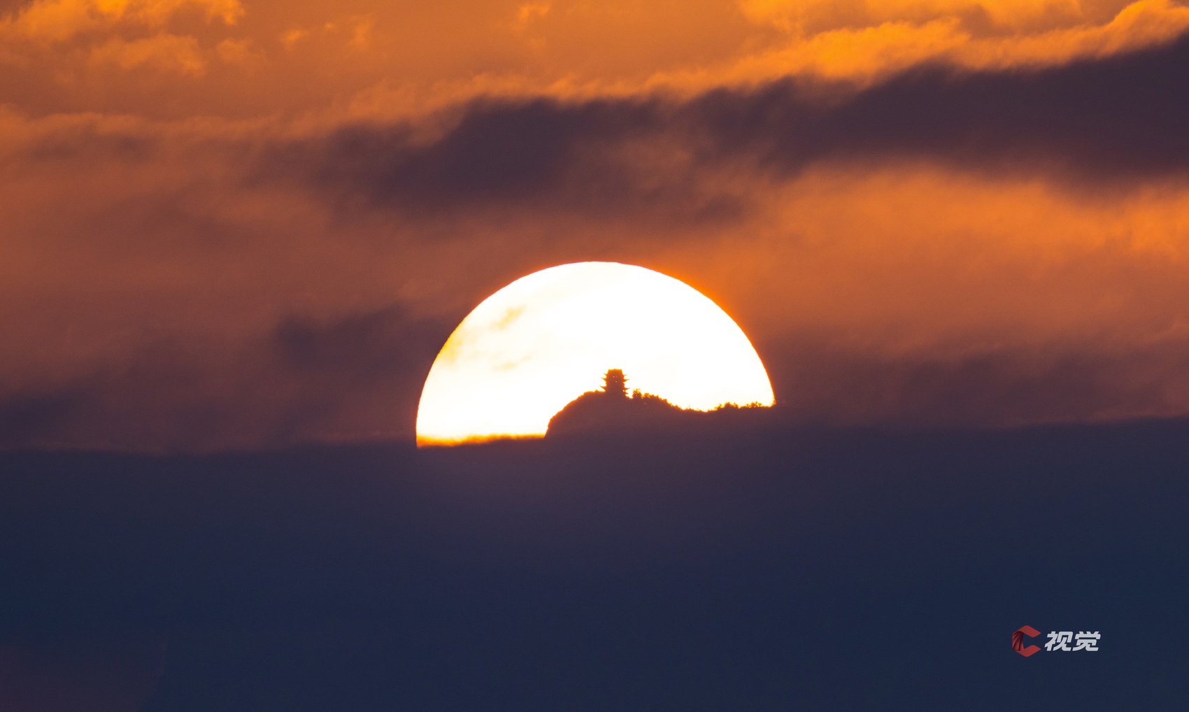 在乐山市水口镇龙窝村,遥望峨眉山万佛顶悬日。C视觉签约摄影师 郭星星