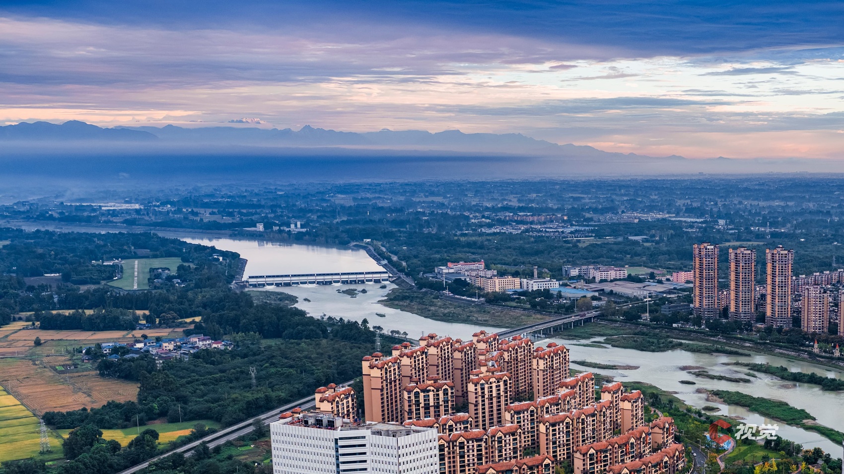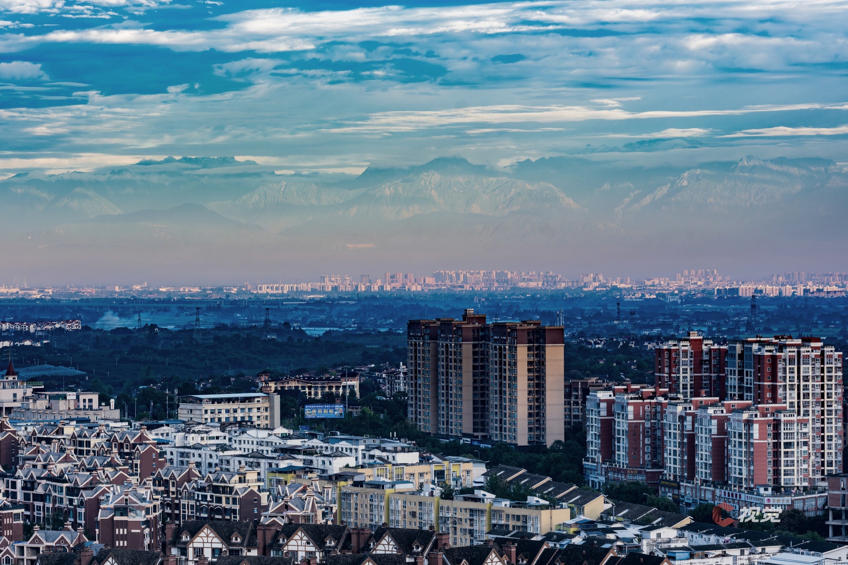 10月13日,在成都金堂县城遥望龙门山脉雪山。C视觉签约摄影师 肖坤德
