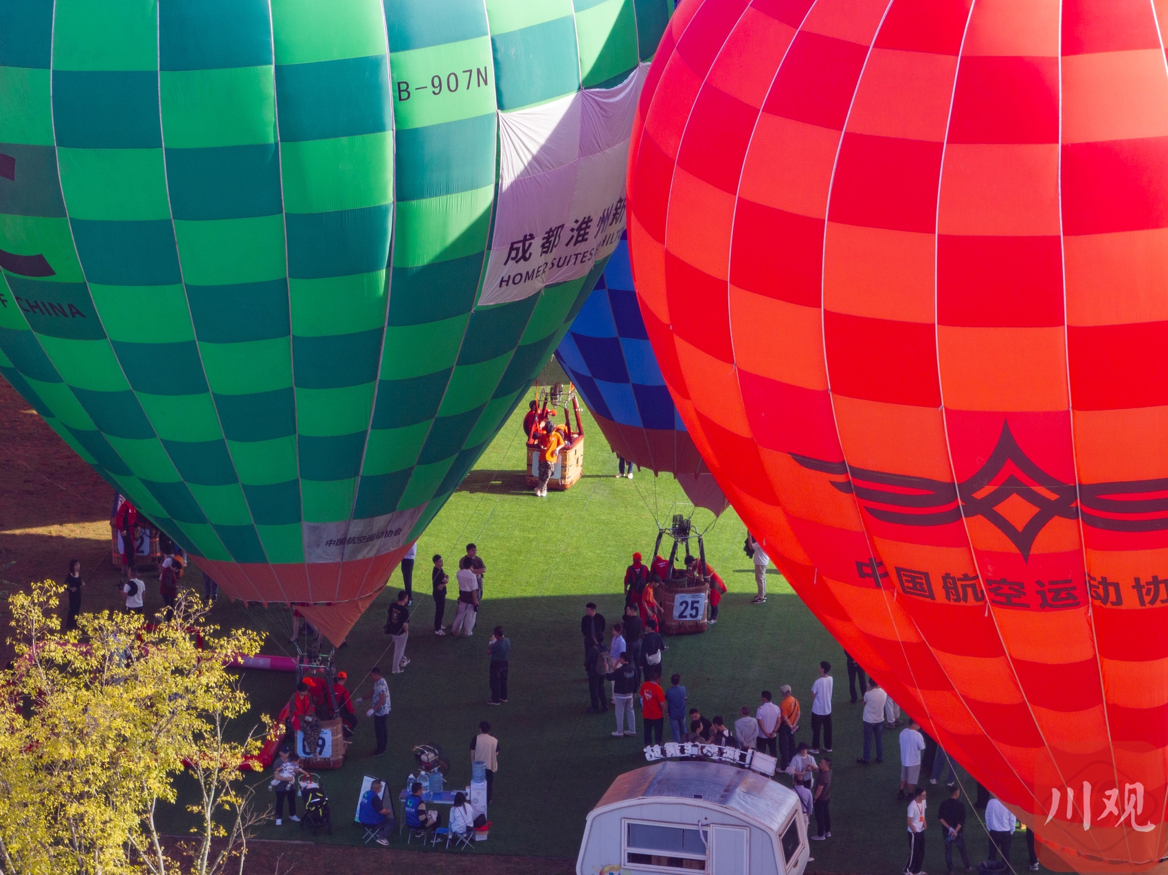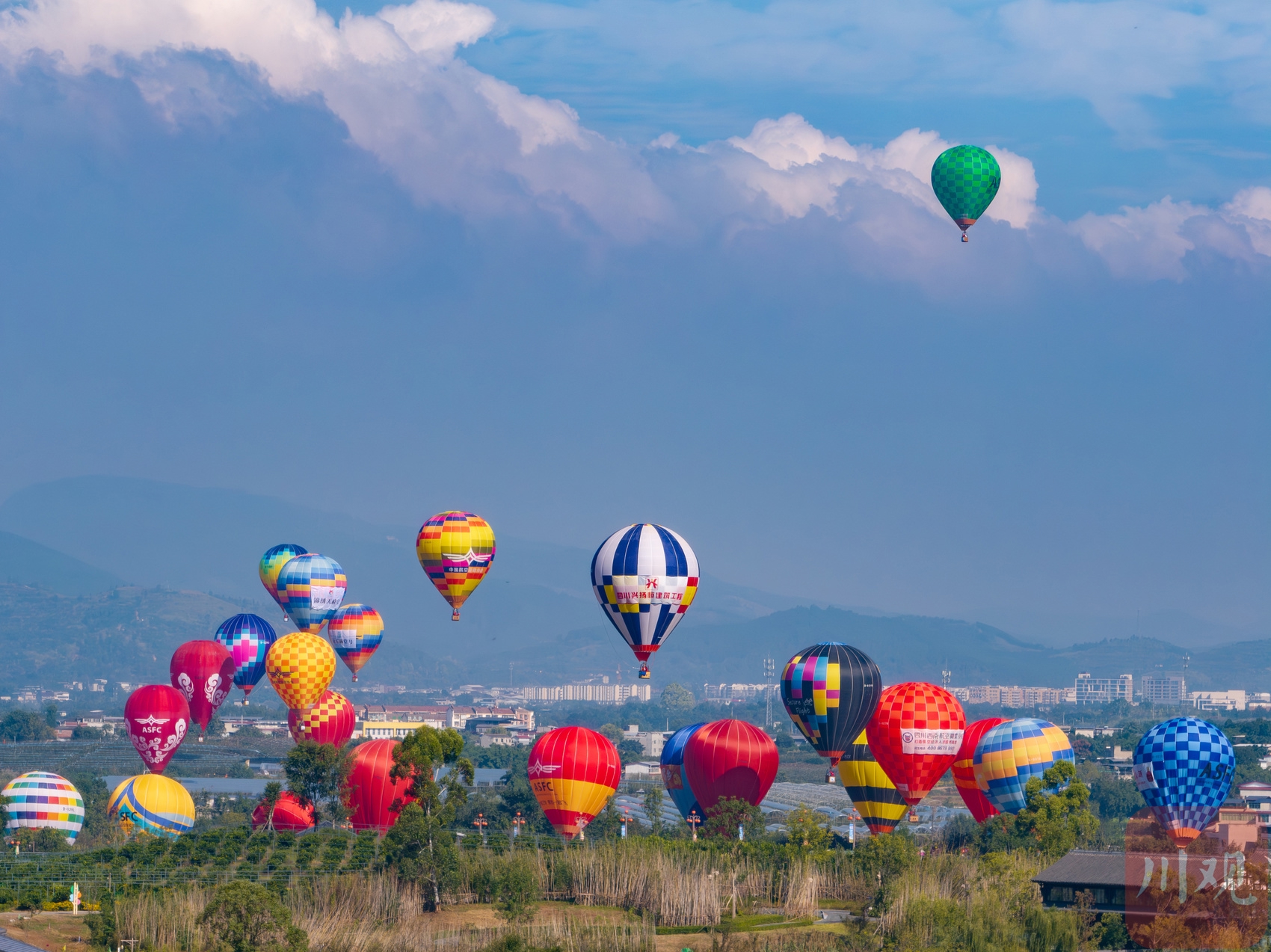 10月15日,2025年全国热气球精英赛(四川金堂站)暨成都市低空文旅消费季活动在成都金堂县启幕。