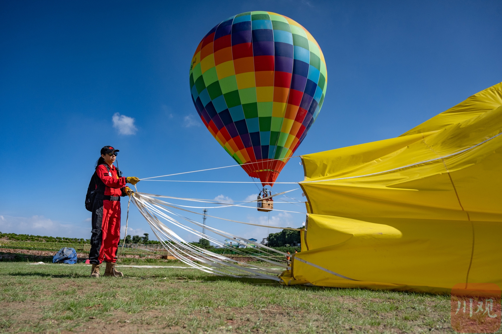 图为10月15日,参赛选手在金堂县三溪镇天府橘乡景区整理热气球。