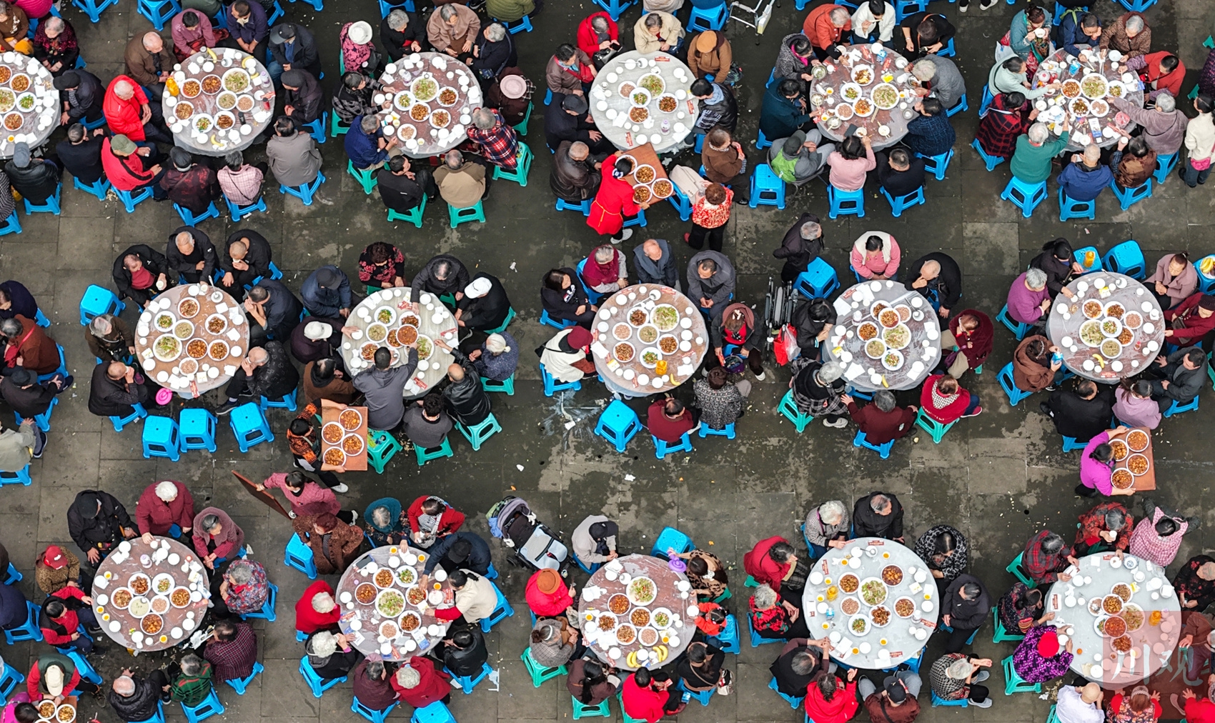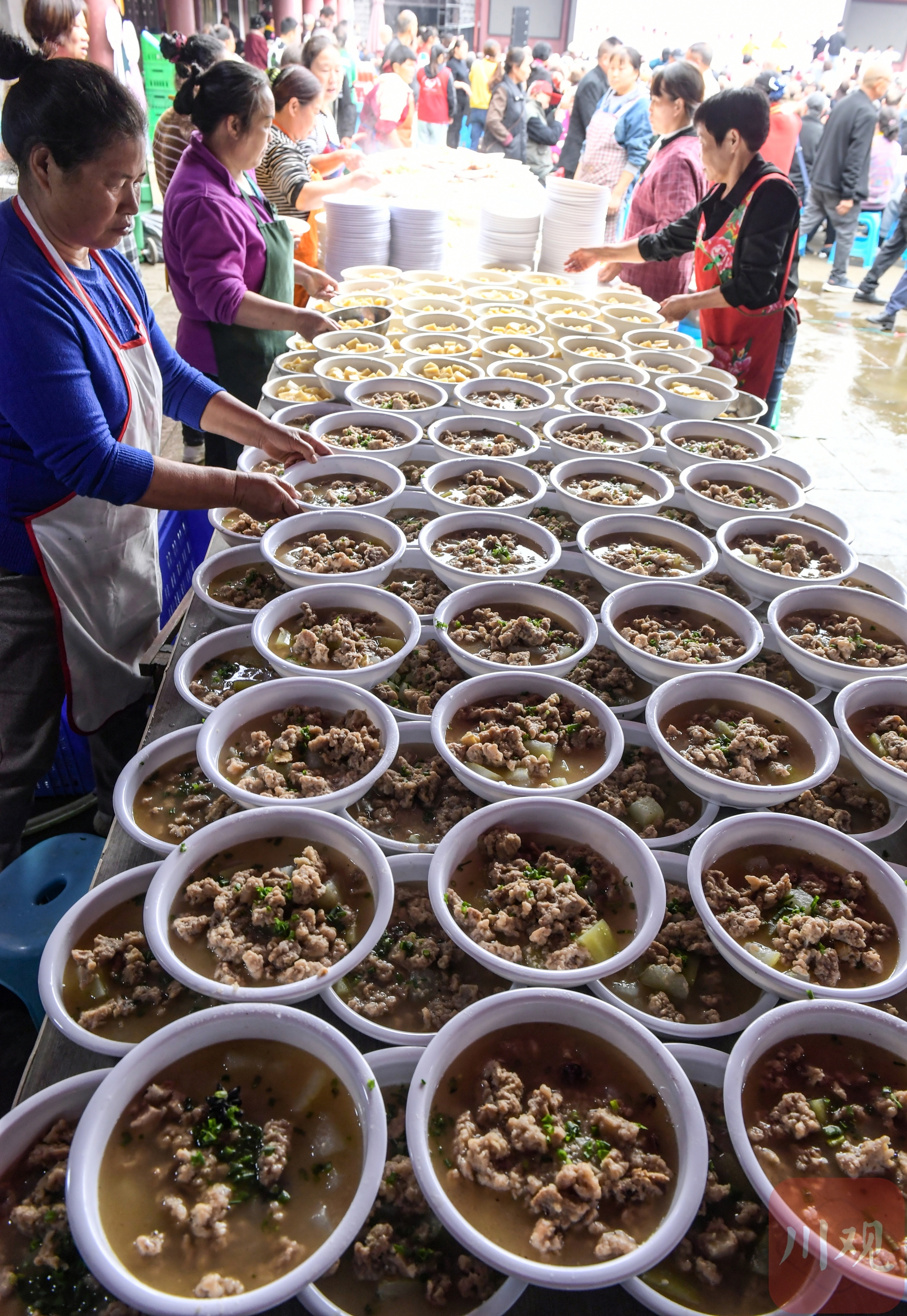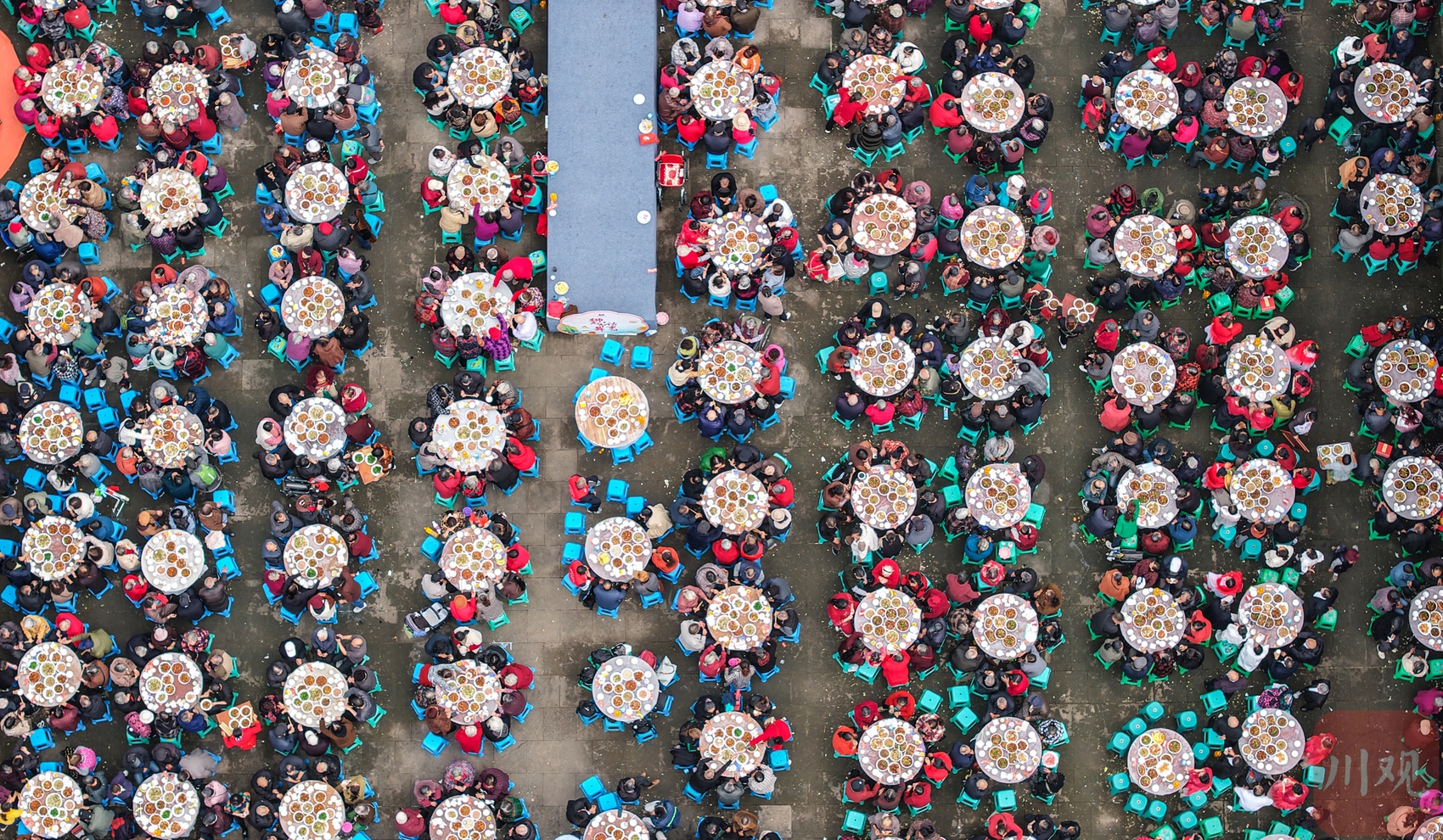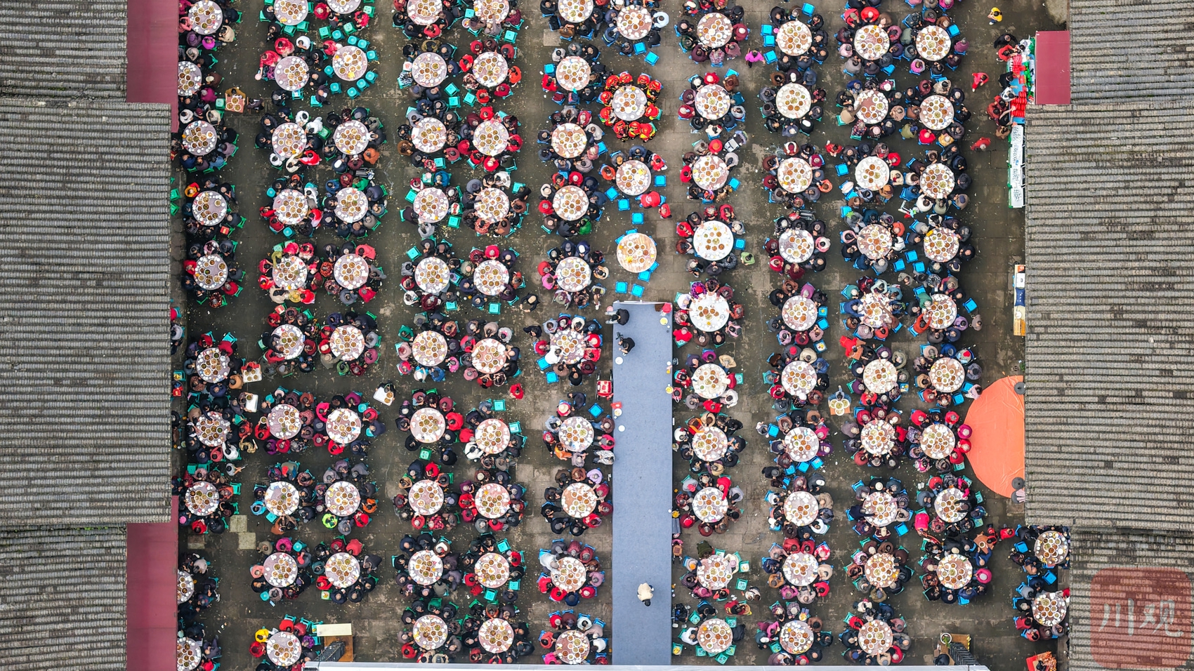 在成都市双流区黄龙溪镇黄龙社区黄龙大剧院,千名老人品尝145桌“坝坝宴”喜迎九九重阳节。