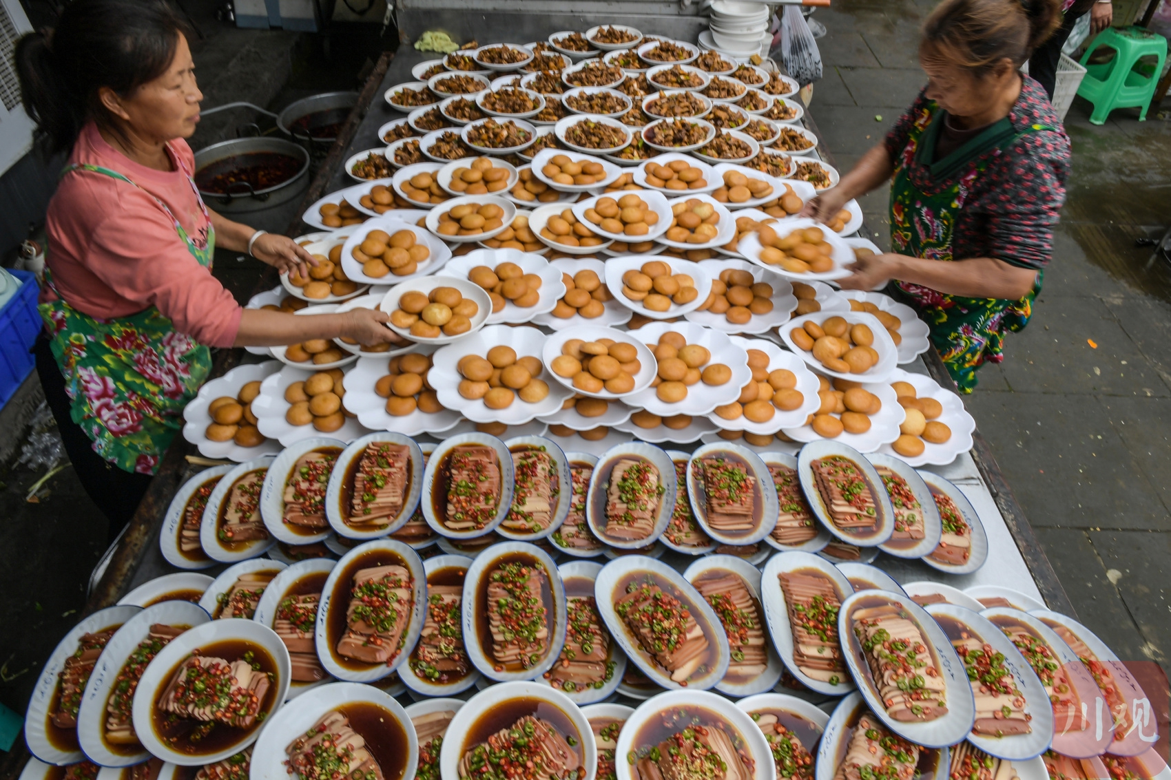 在成都市双流区黄龙溪镇黄龙社区黄龙大剧院,厨师配制“坝坝宴”菜品。