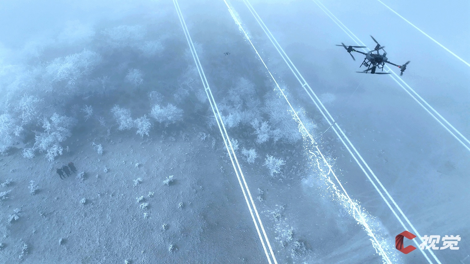 凉山州甘洛县海棠镇境内,电力工人利用无人机对220千伏输电线路开展除冰作业,确保线路平稳运行。 C视觉签约摄影师 施少府 摄