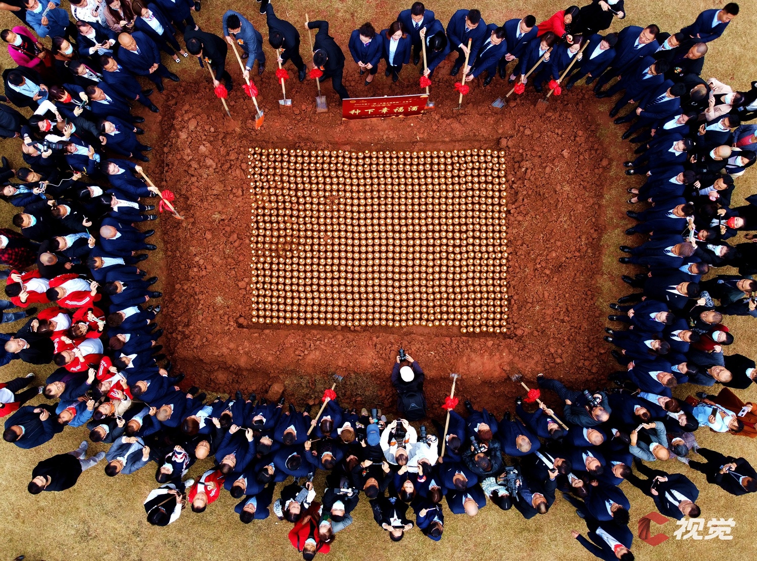10月29日,农历九月初九,在成都市金堂县栖贤街道梨花沟村,当地群众共同扬铲种下999瓶酒来祈福。