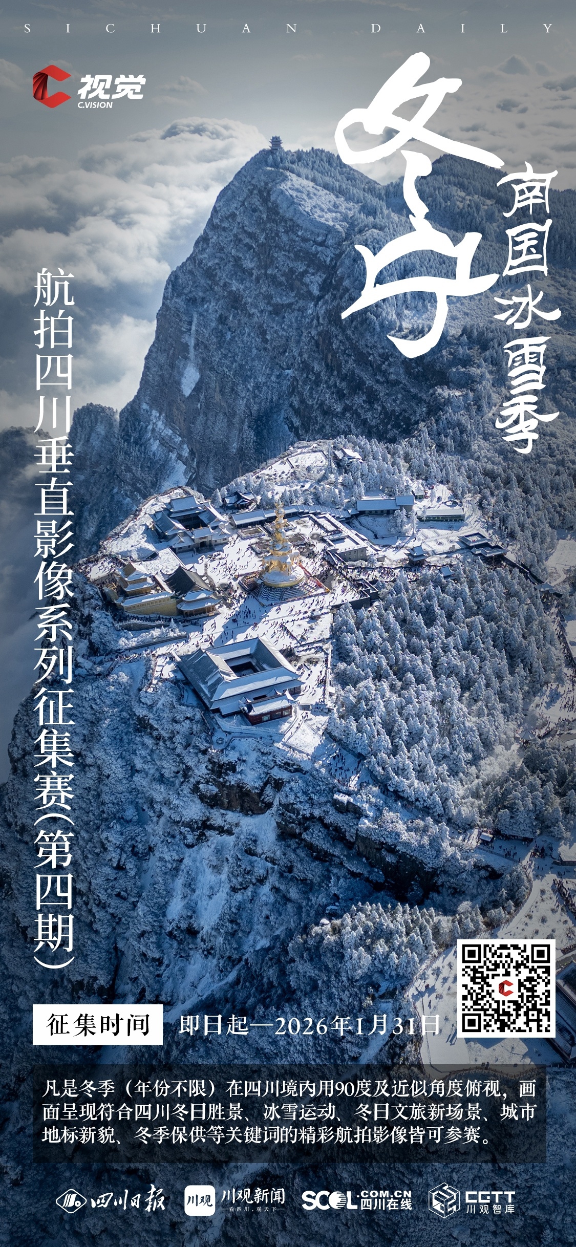秋日乐章虽已奏完,但镜头并未停歇。C视觉影像数据库“冬宁·南国冰雪季”航拍垂直影像系列征集赛于12月5日接力上线——同一个垂直视角,换一种冰雪色彩,继续记录四川的冬日胜景、冰雪激情与城市新貌……请再次放飞无人机,将四川冬天的绝美一并收录进“垂直相册”吧!
