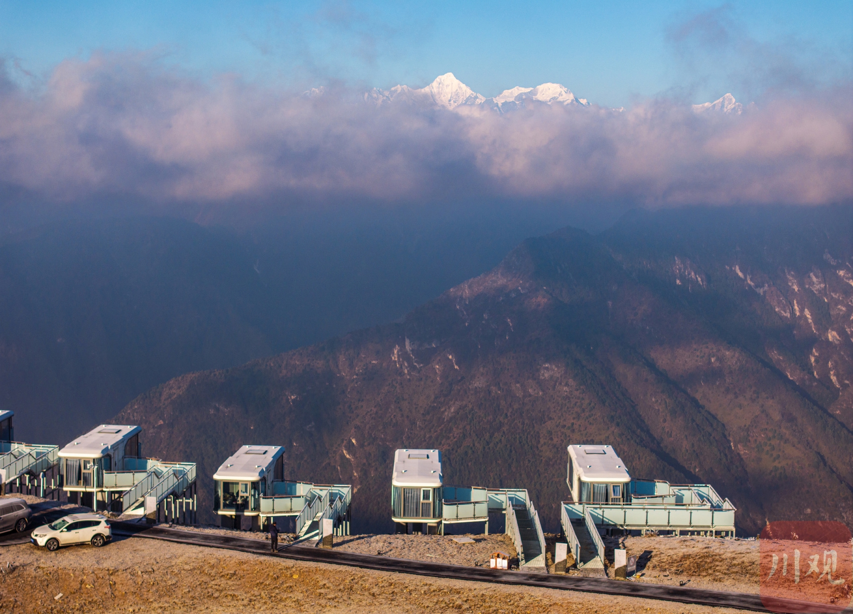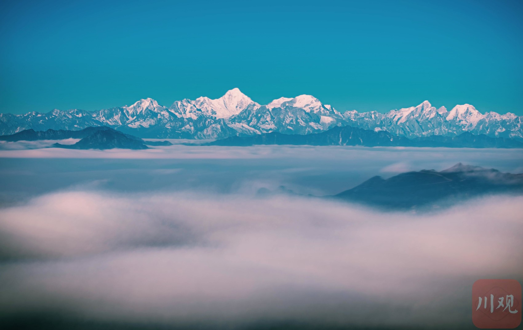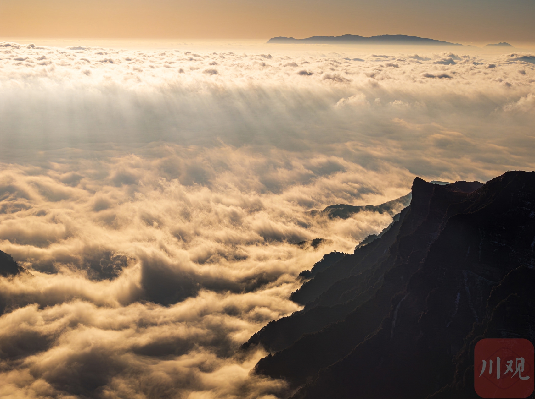 12月14日清晨,雅安市汉源县马烈乡境内的轿顶山,因昼夜温差影响,在日出前后形成了壮观的云瀑。云雾沿山脊倾泻而下,时而如白帘垂挂,时而似波涛奔涌。阳光洒落时,云海与云瀑交织,构成一幅光影变幻的画卷。远处的贡嘎雪山屹立于云海之上,呈现出四川冬季独特的风光,引得现场游客纷纷驻足拍摄。