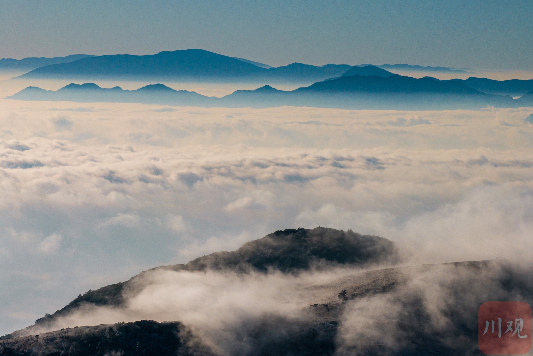 据了解,轿顶山冬季云海覆盖面积可达数十平方公里,其中沿山脊流动的云瀑景观最为独特,是当地的标志性自然景观。