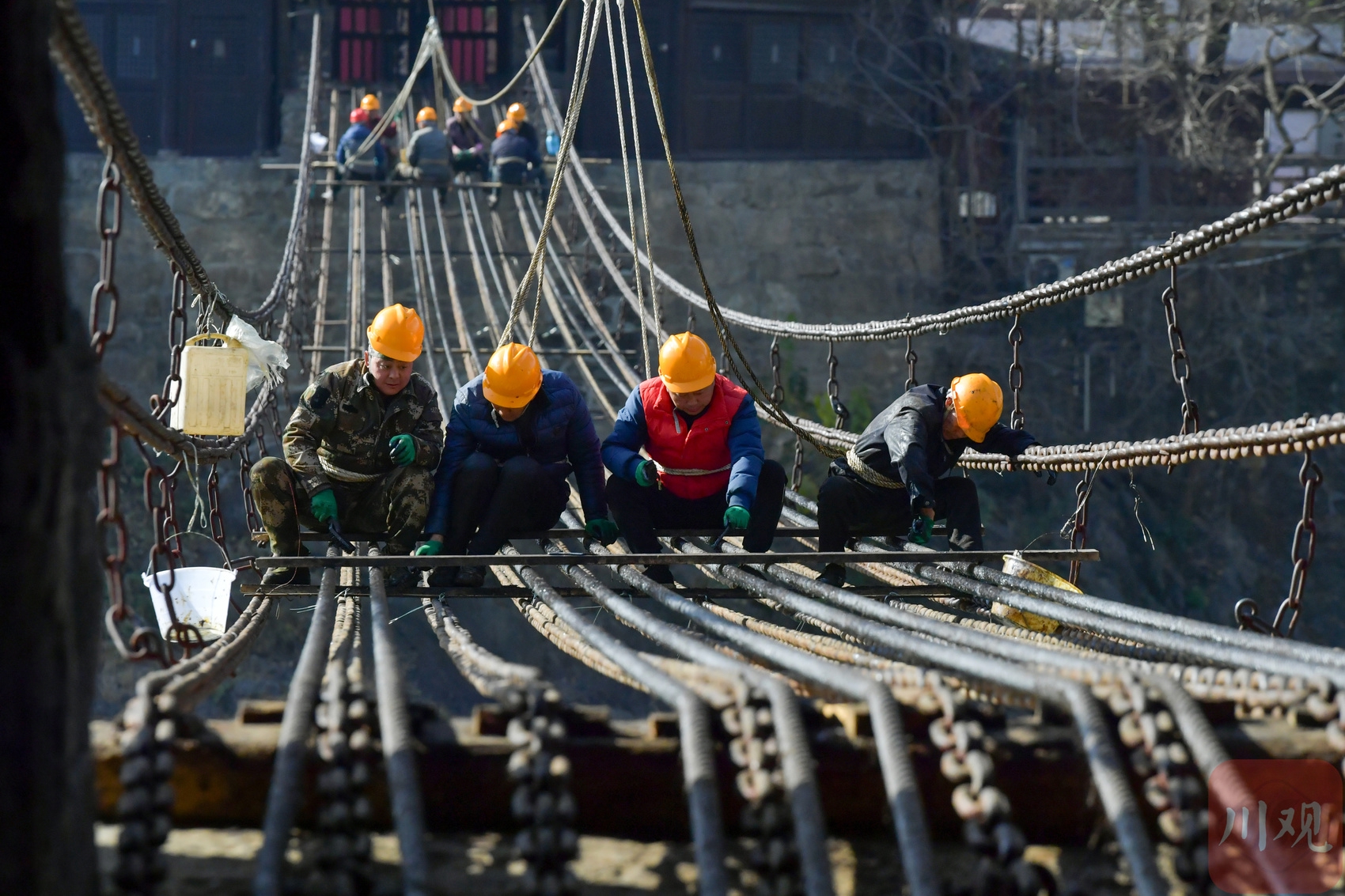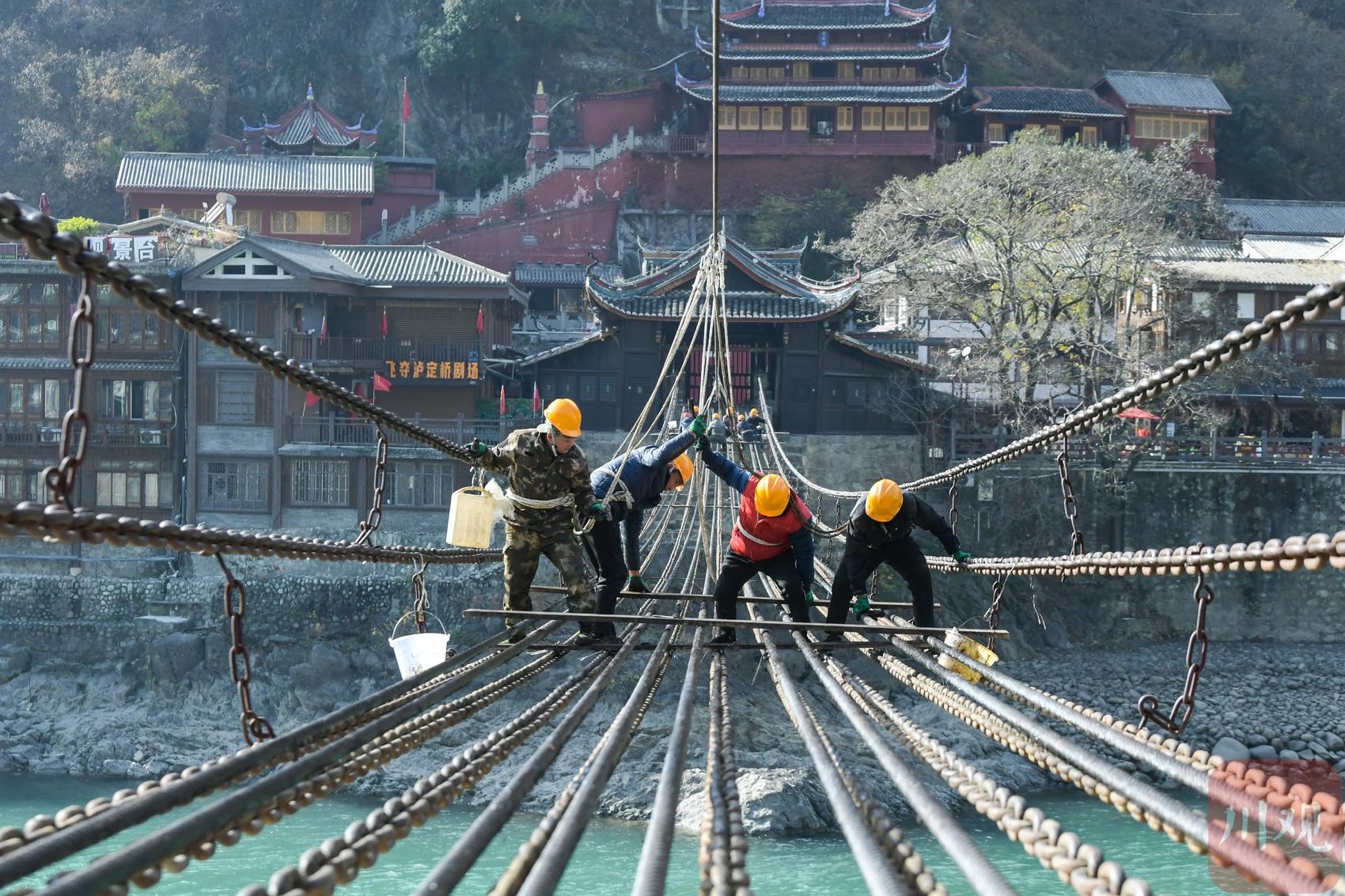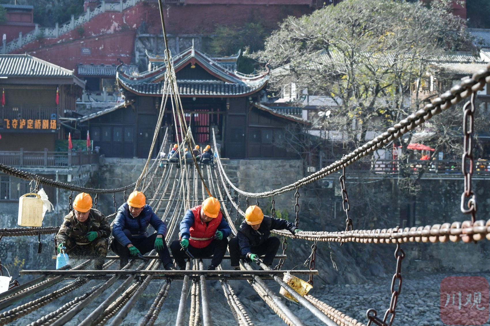“自第四次全国文物普查启动以来,泸定县以普查为契机,对全县文物实施系统性梳理与精细化保护。”泸定县文物考古研究所相关负责人表示,此次检修严格遵循文物保护规范,所有工序均采用传统工艺,在最大程度保留桥梁原有历史风貌的前提下消除安全隐患,让这座镌刻红色基因的古桥焕发持久生命力。