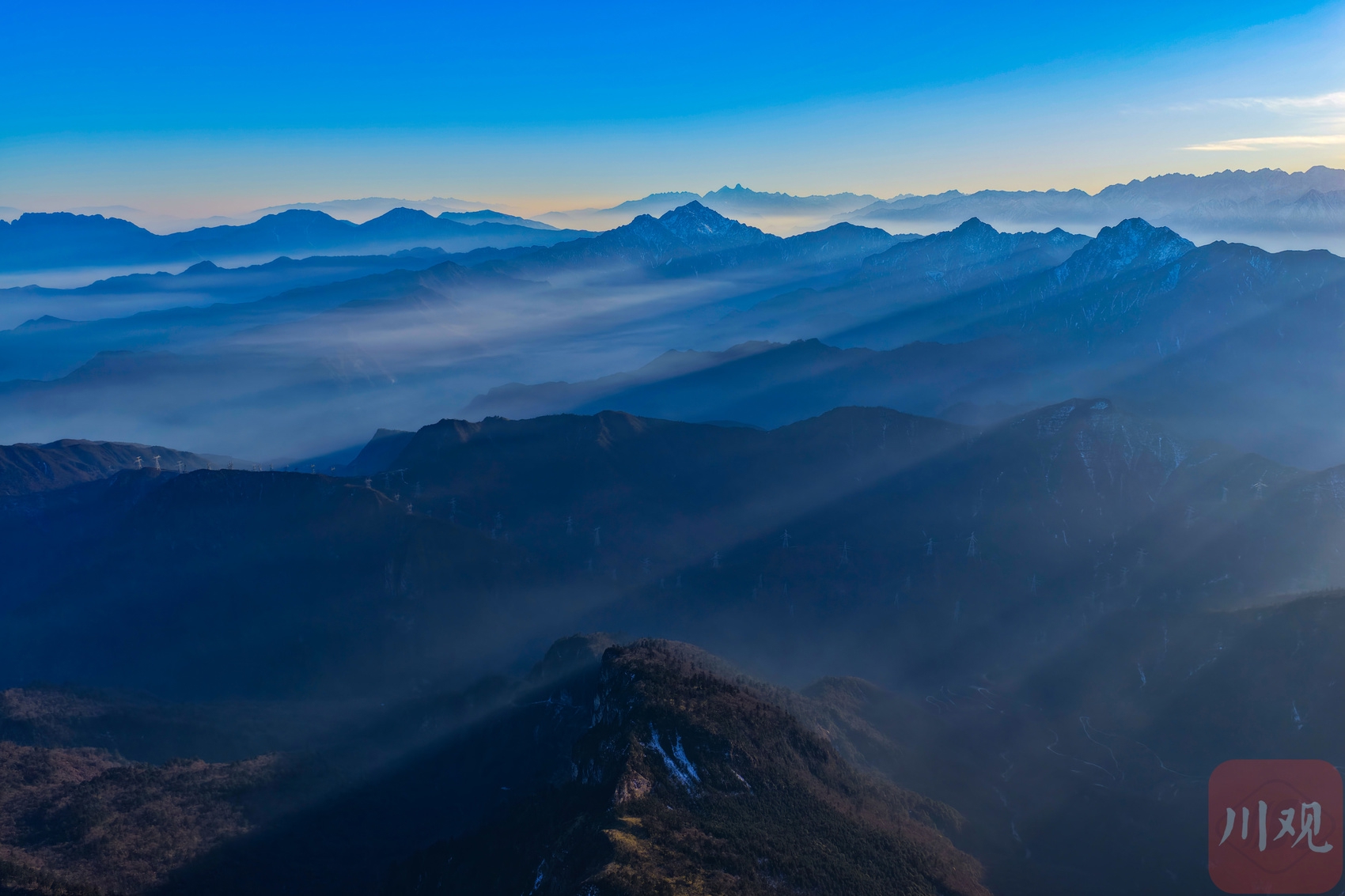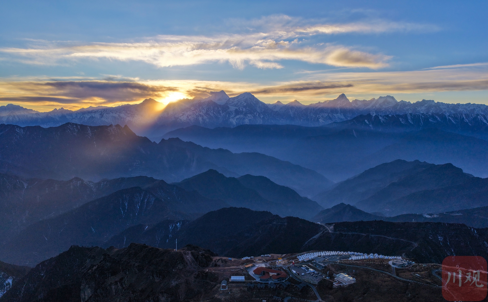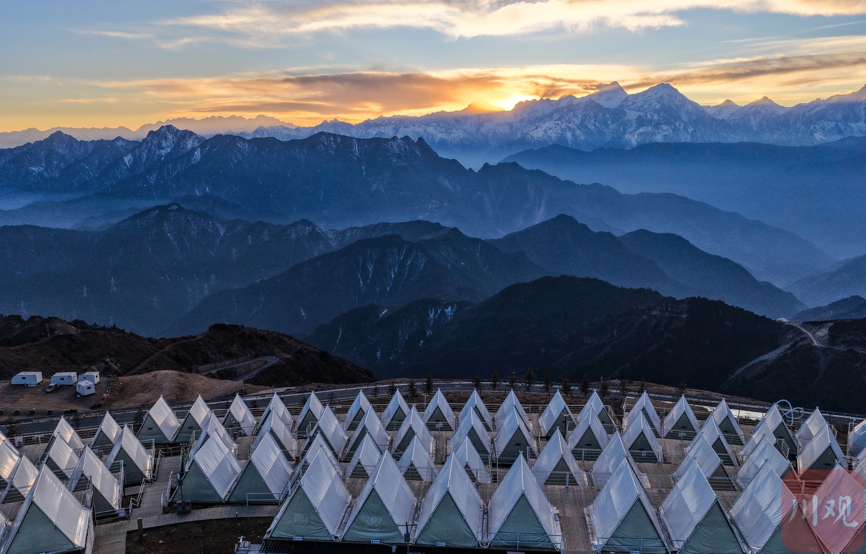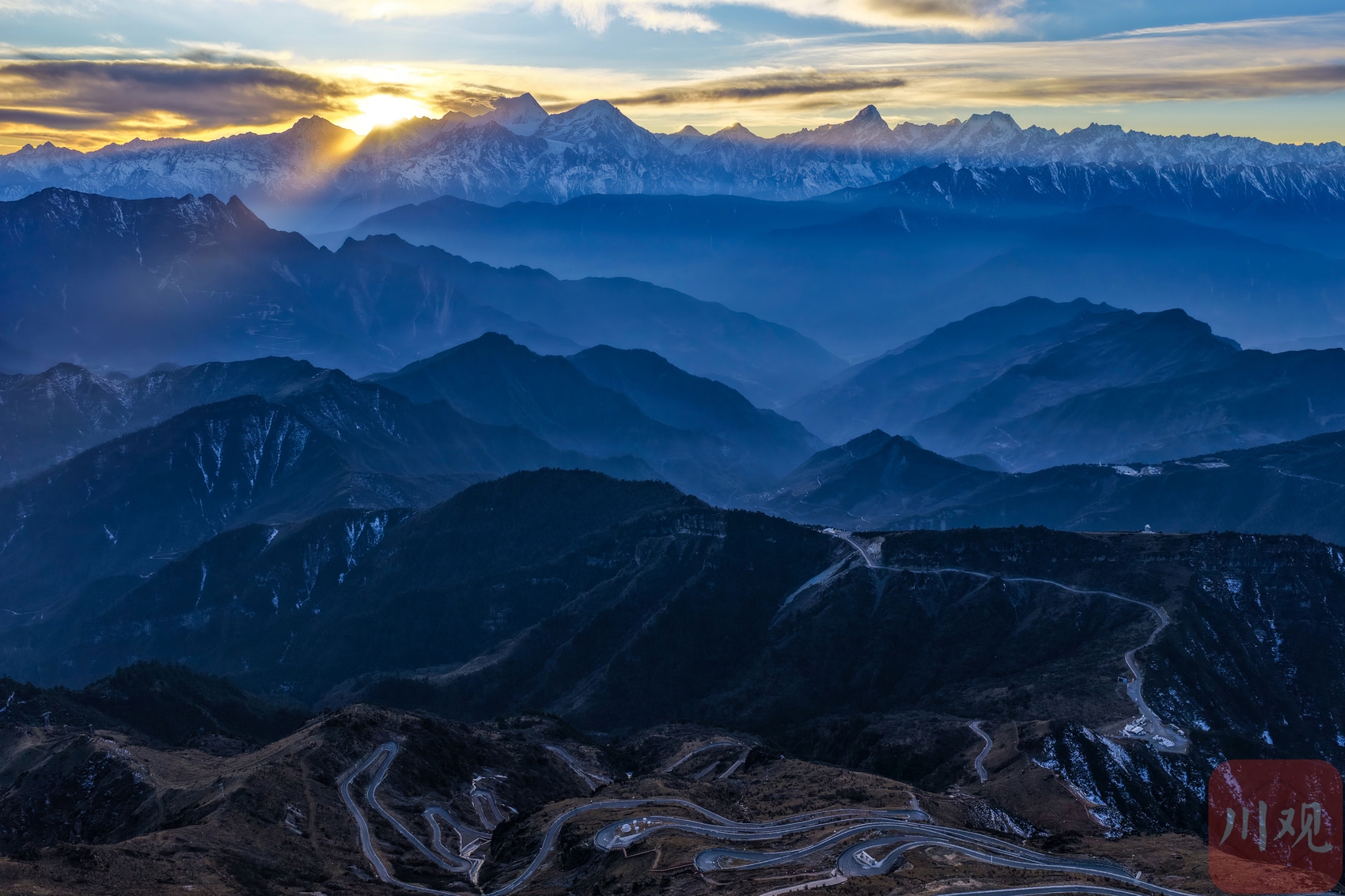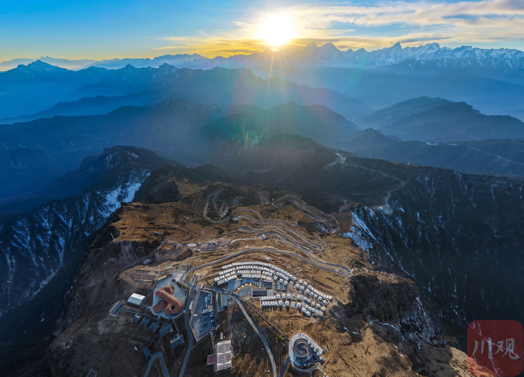 2025年12月18日,在海拔3600多米的牛背山顶,远望云海之外的群山连绵起伏,峰峦层层叠叠,薄雾如轻纱般漂浮于天地之间,构成一幅幅壮阔的“水墨山水画卷”。从空中俯瞰,更能领略其“大、美、奇、变”的多样风格,令人沉醉。