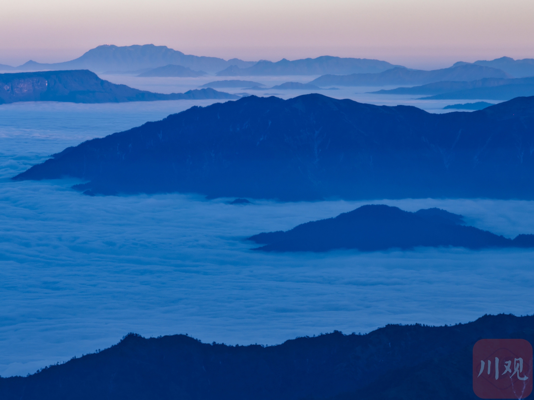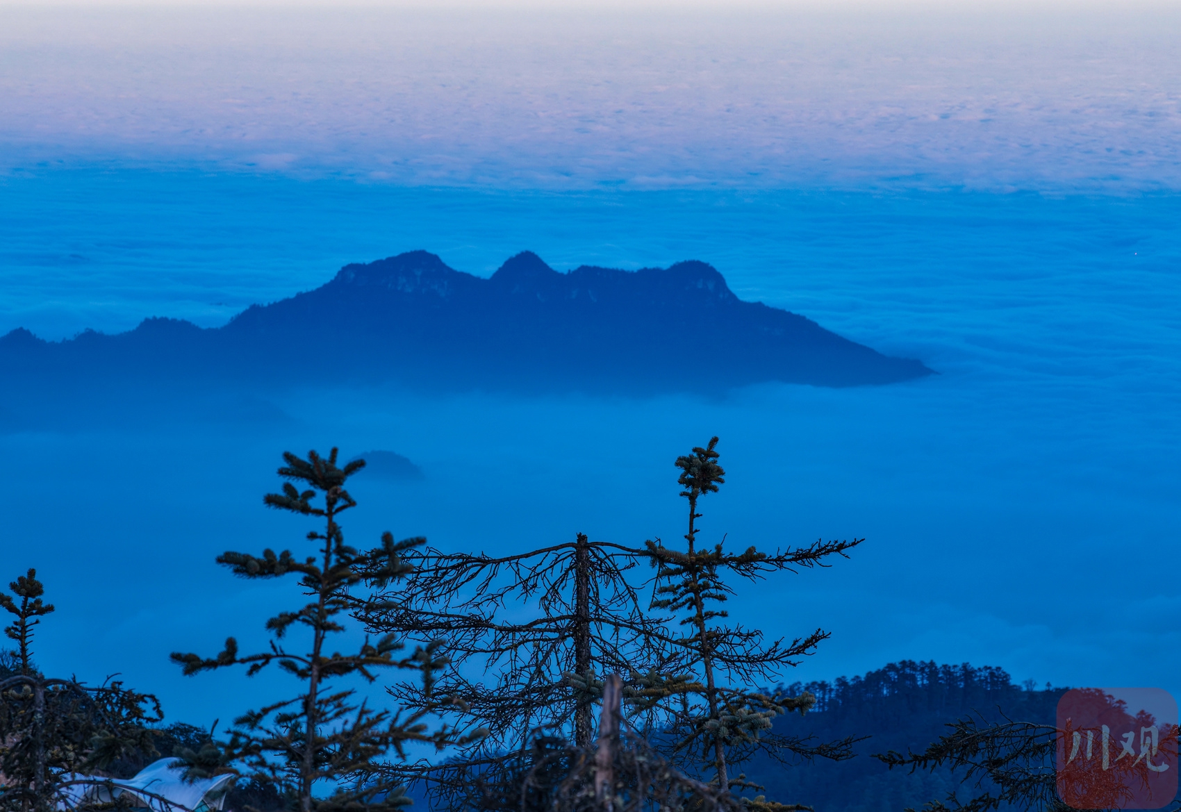 2025年12月18日,位于四川省雅安市荥经县与泸定县交界处的牛背山顶犹如一幅巨大的“水墨山水画”。
