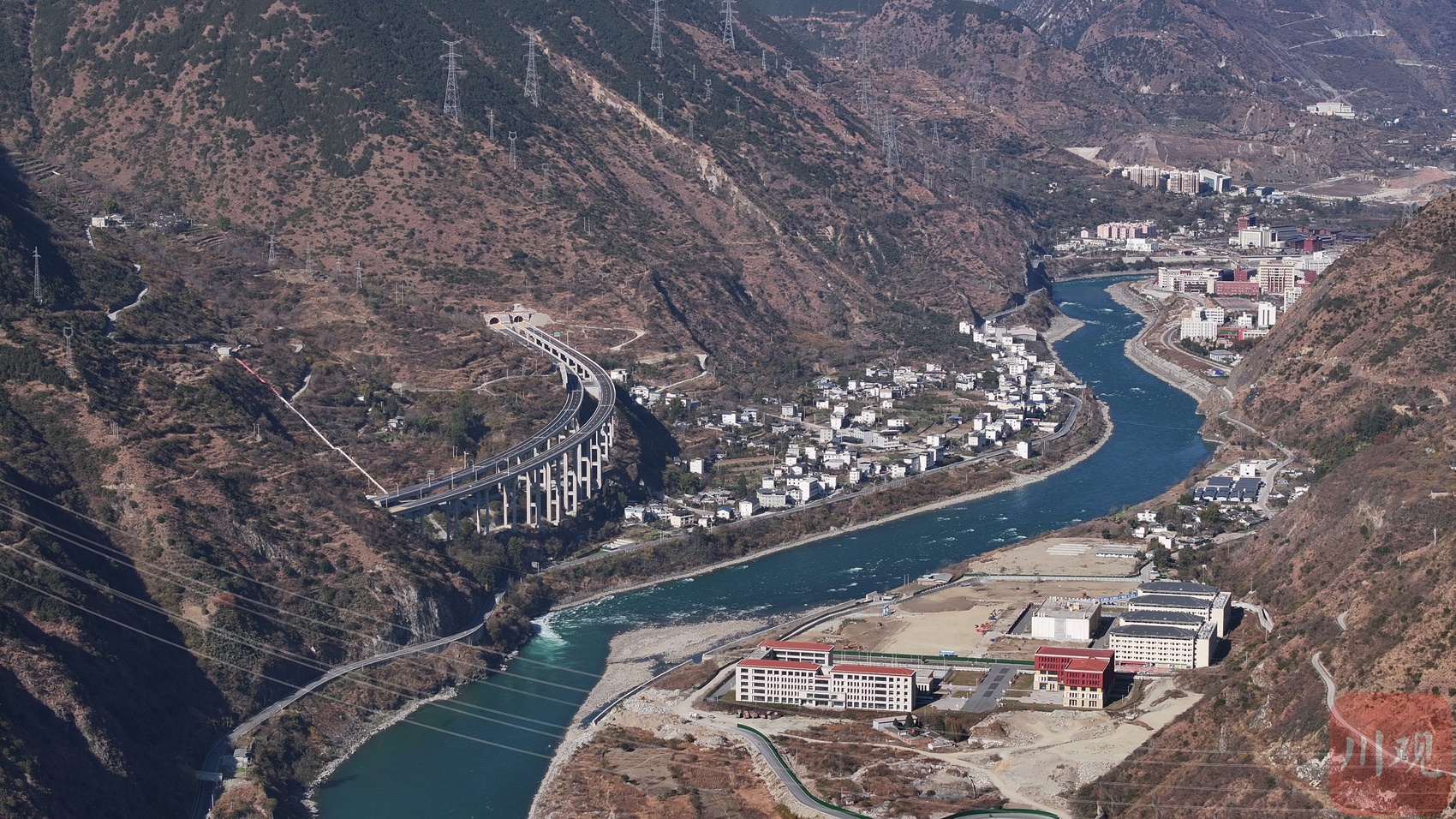 12月30日,泸定县到石棉县的泸石高速泸定段通车,航拍泸石高速跨河大桥。