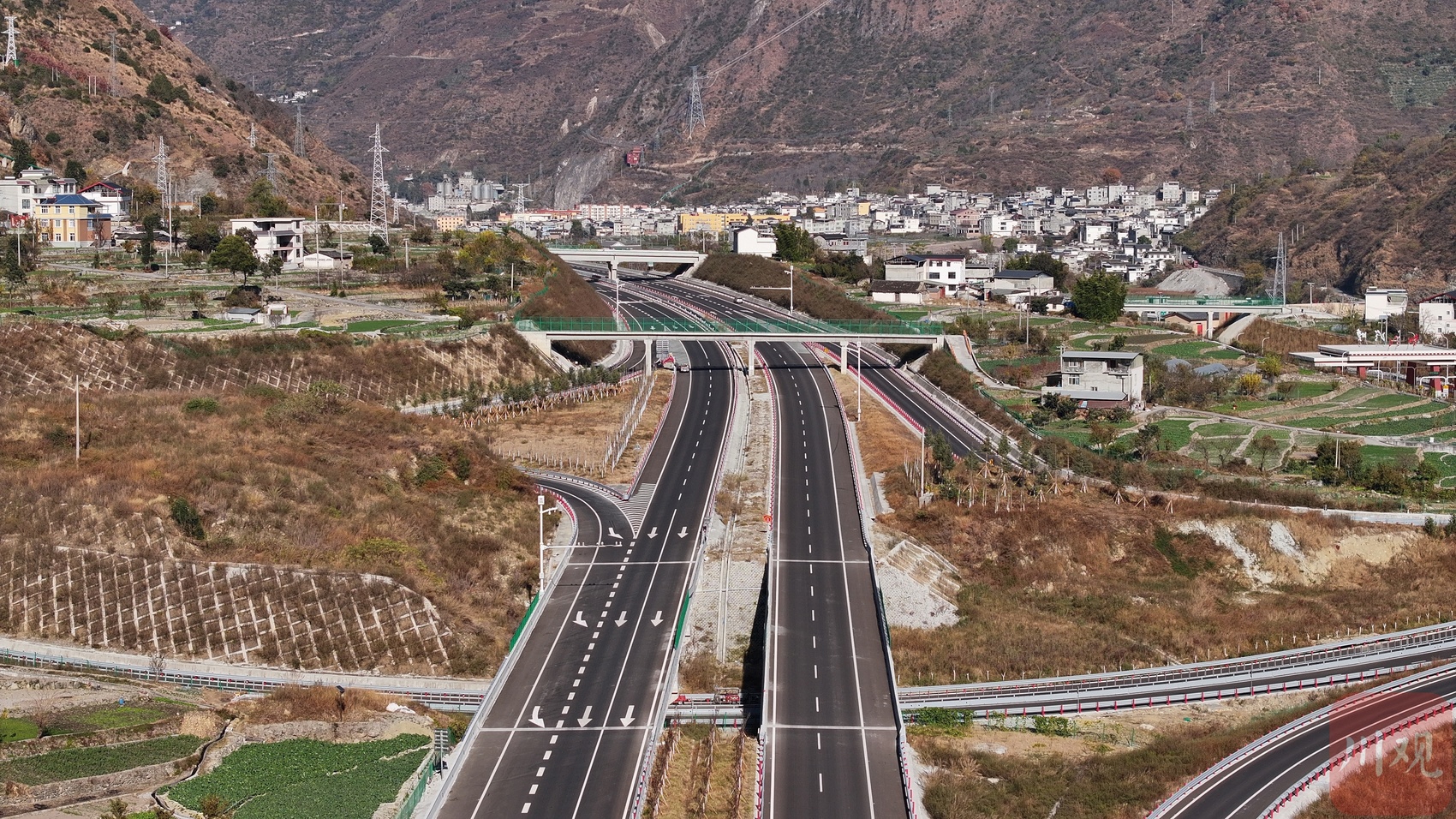 12月30日,泸定县到石棉县的泸石高速泸定段通车,鸟瞰泸石高速泸定南互通。