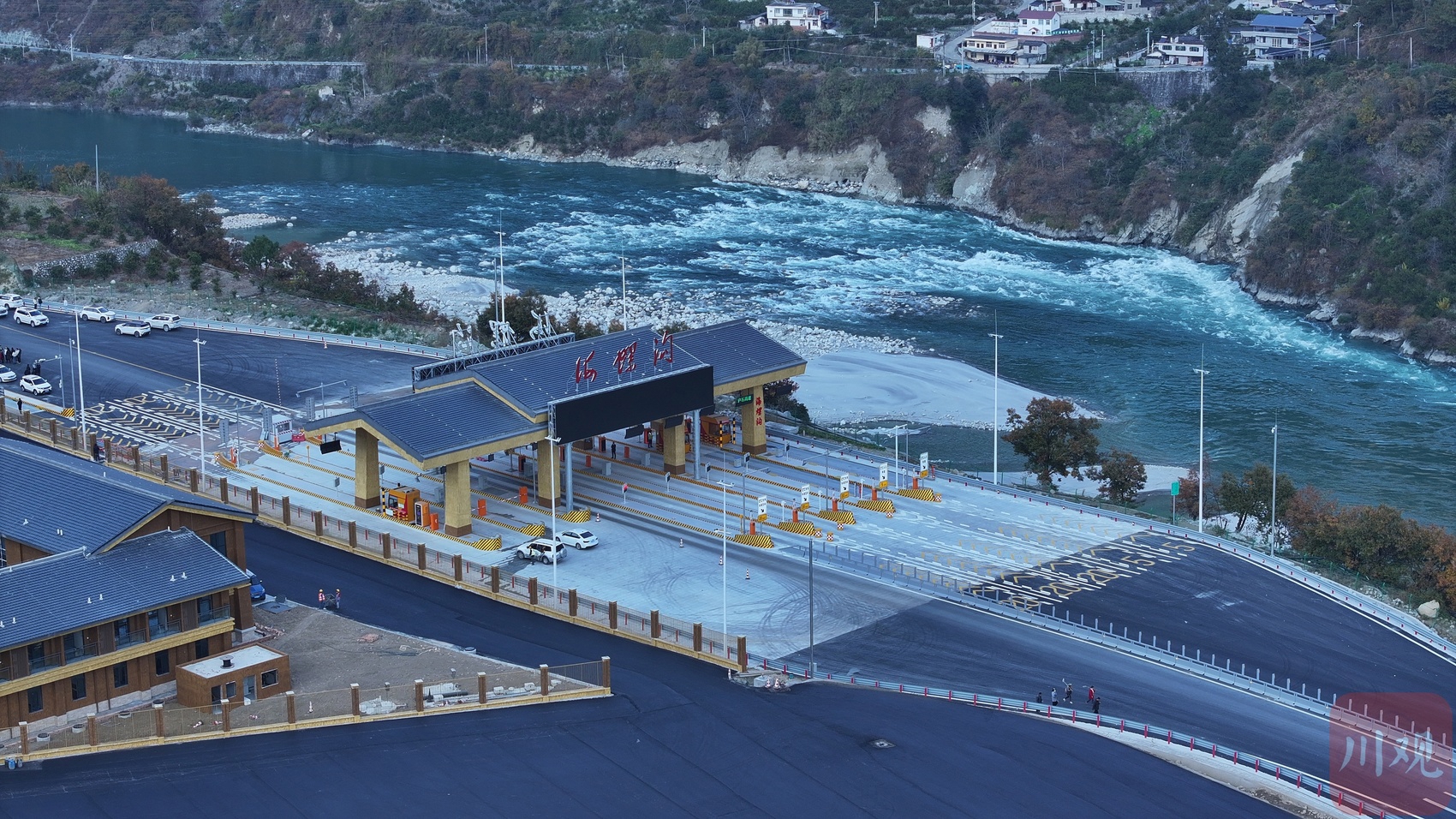 12月30日,泸定县到石棉县的泸石高速泸定段通车,航拍泸石高速海螺沟收费站。