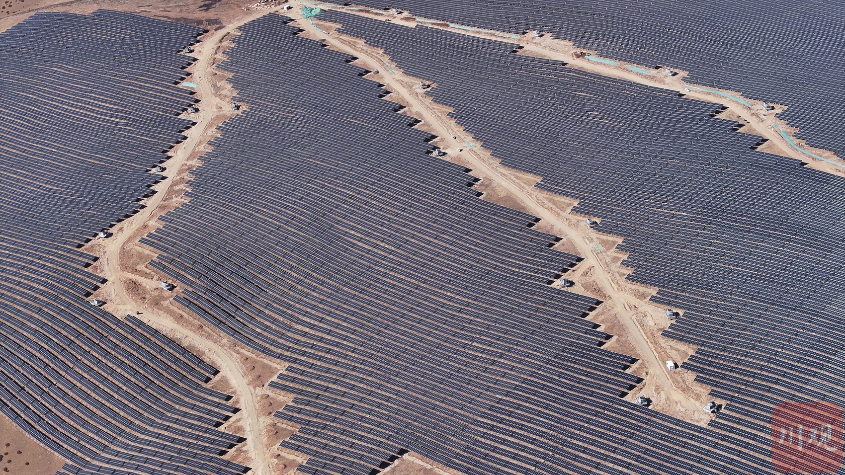 鸟瞰索绒光伏电站发电单元阵列