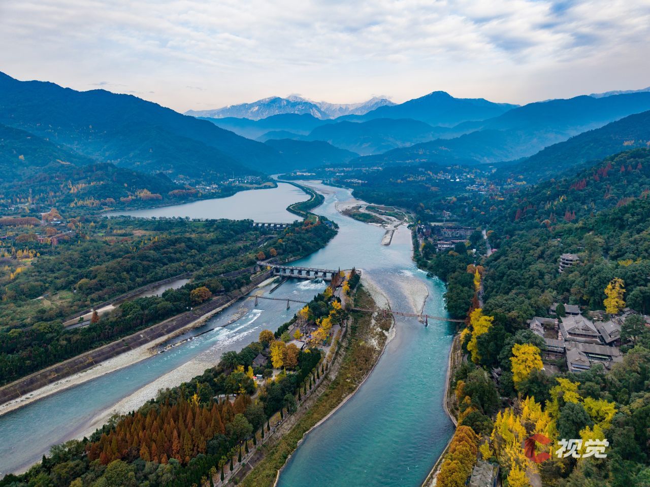 11月23日,都江堰又见雪山,色彩斑斓的彩林与雪山交相辉映,别有韵味。C视觉签约摄影师 周新联
