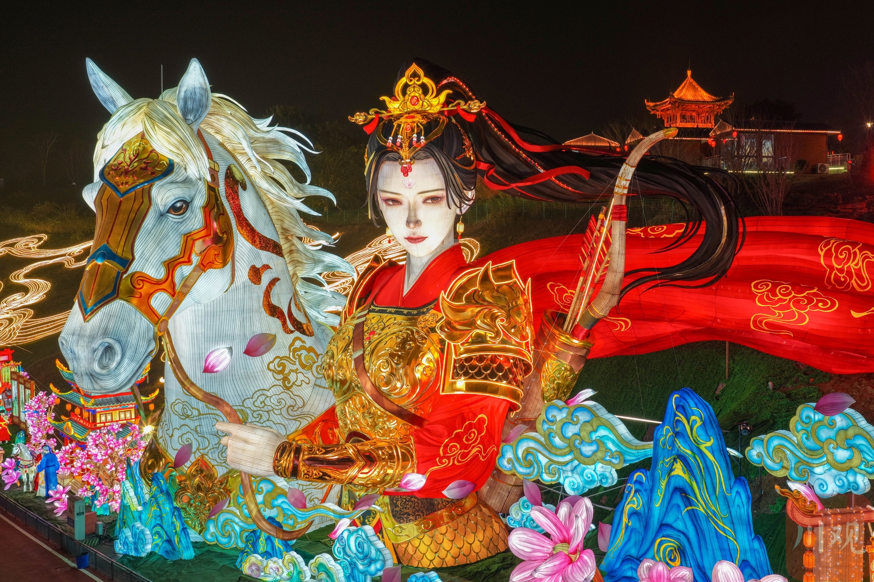 180米长的“木兰传奇”灯组如彩灯连环画舒展。