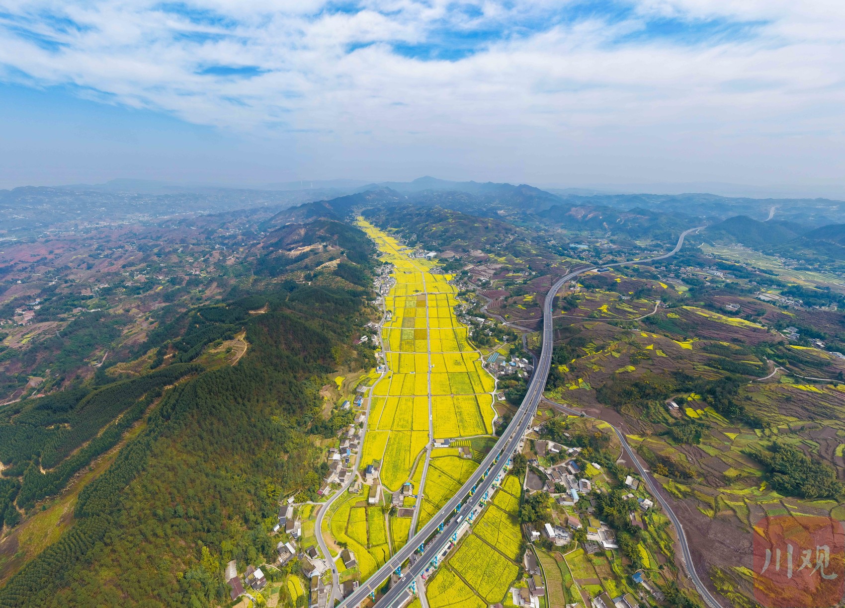 金黄的油菜花开满山谷。