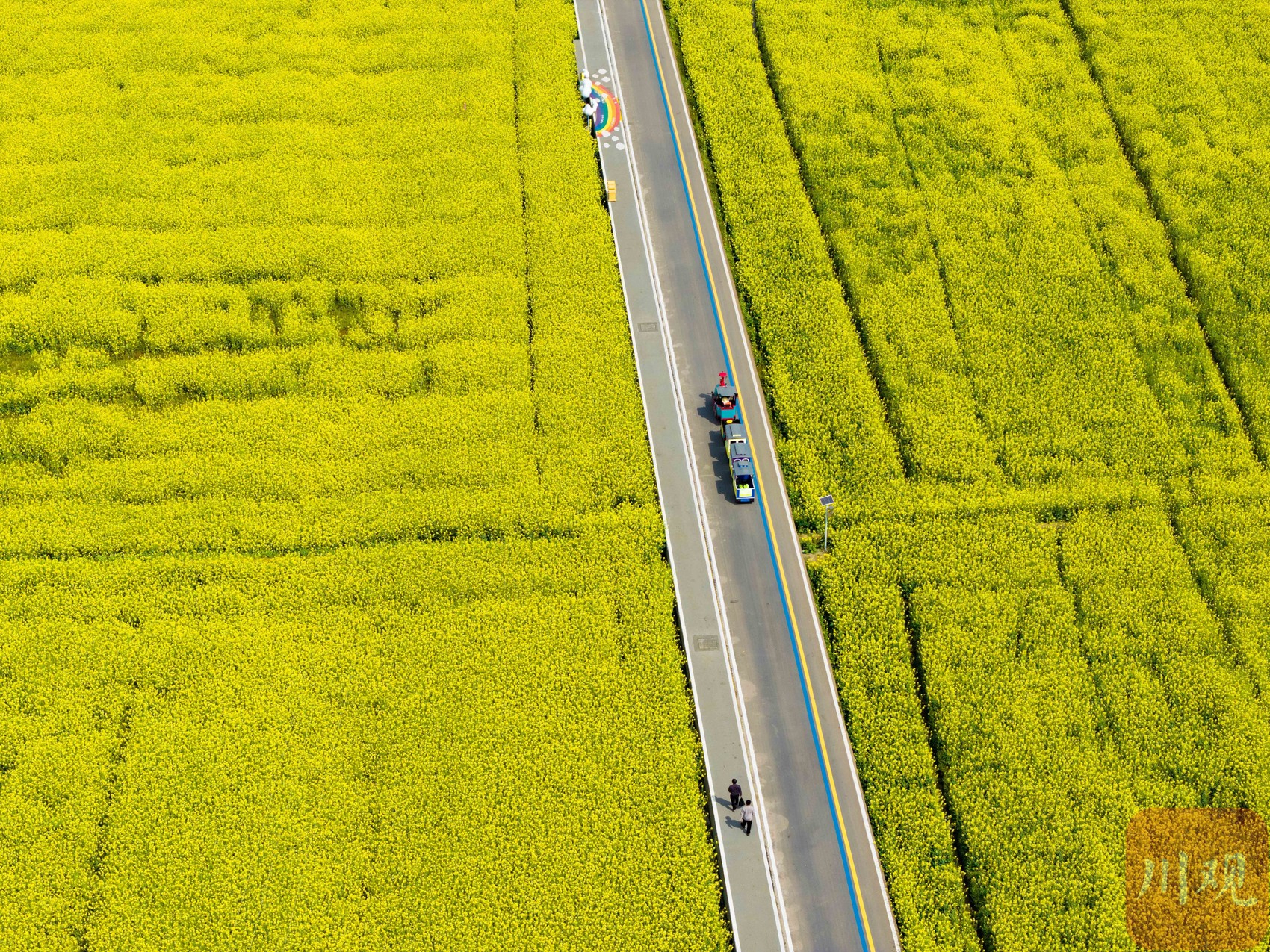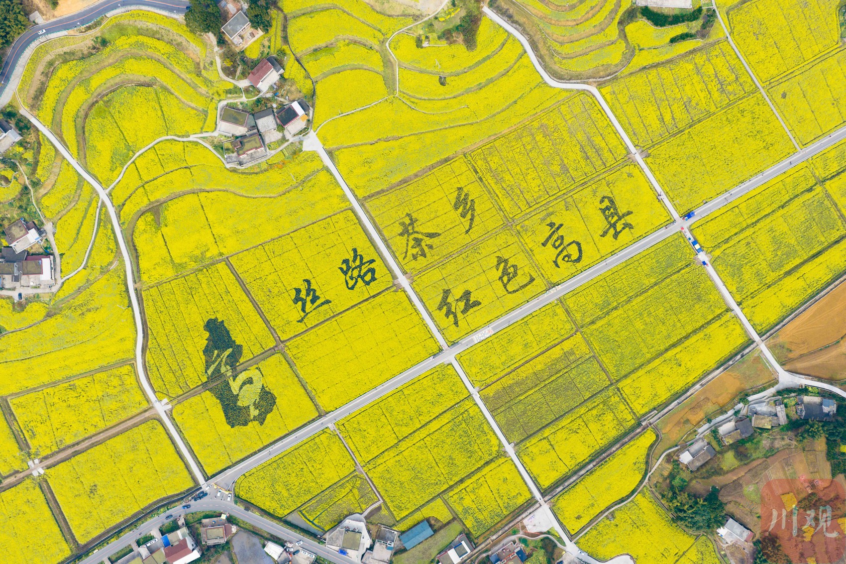 油菜花海中的文字。