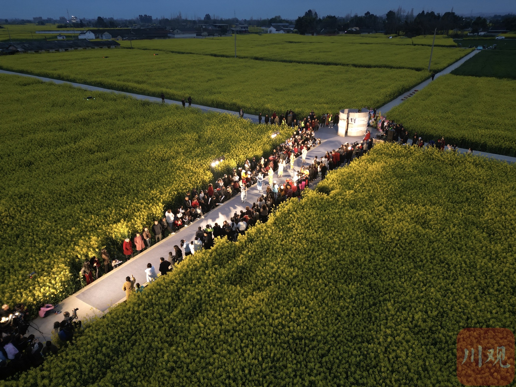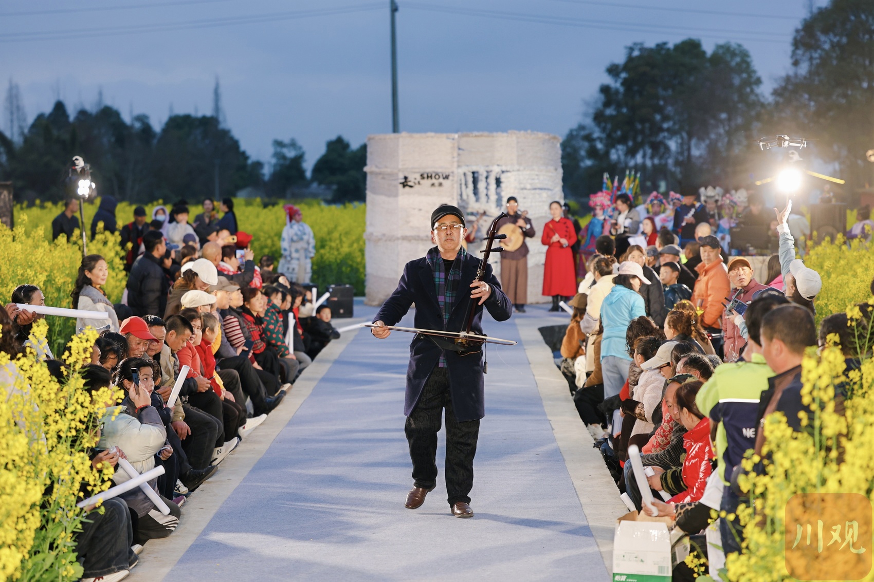 3月7日晚,德阳市旌阳区德新镇长江村油菜花海旁,一场“非遗之美·匠心传承”主题时尚秀火热上演。乡间道路化身专属T台,春日田园遇上非遗匠心,上演传统文化与乡村风光的惊艳碰撞。