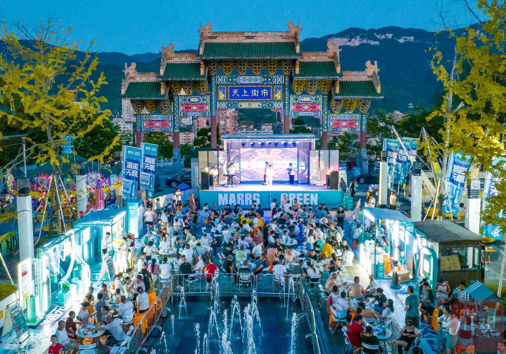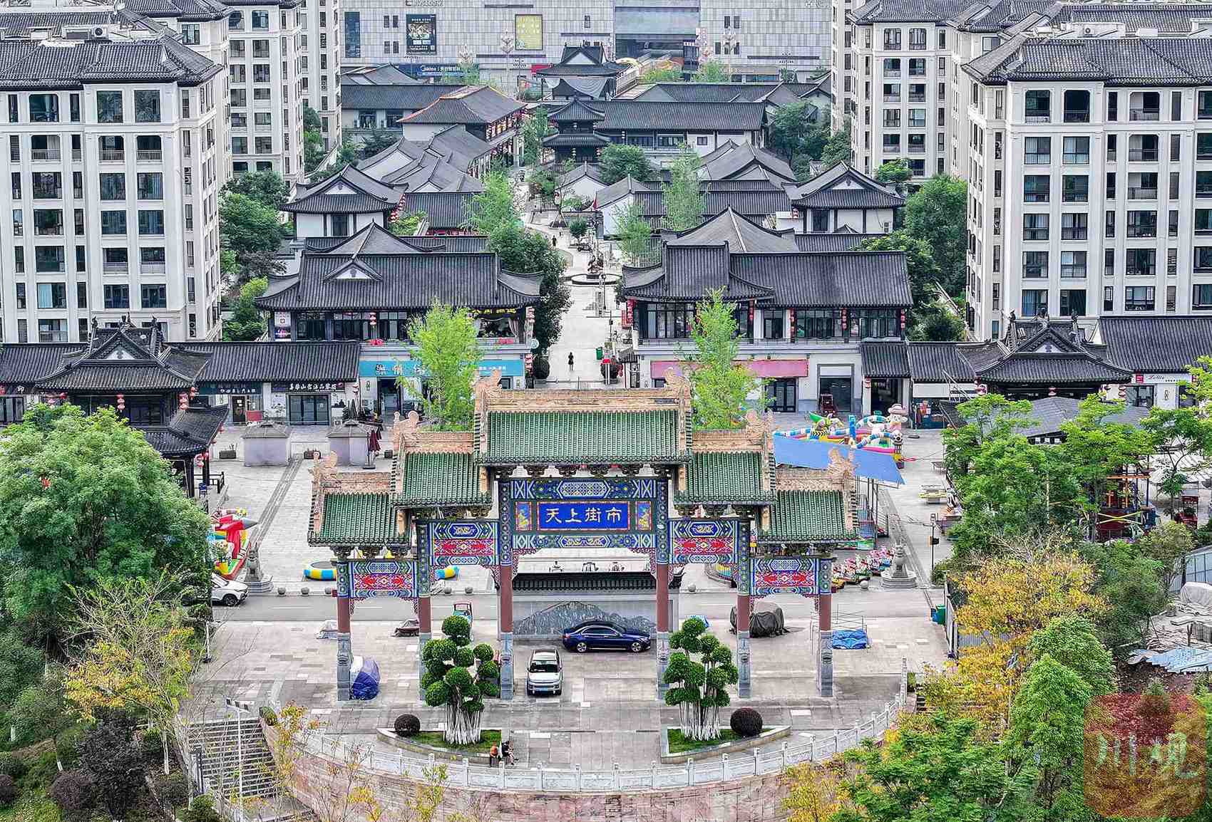 华蓥市蓥城集商贸文化休闲娱乐于一体的“天上街市”。