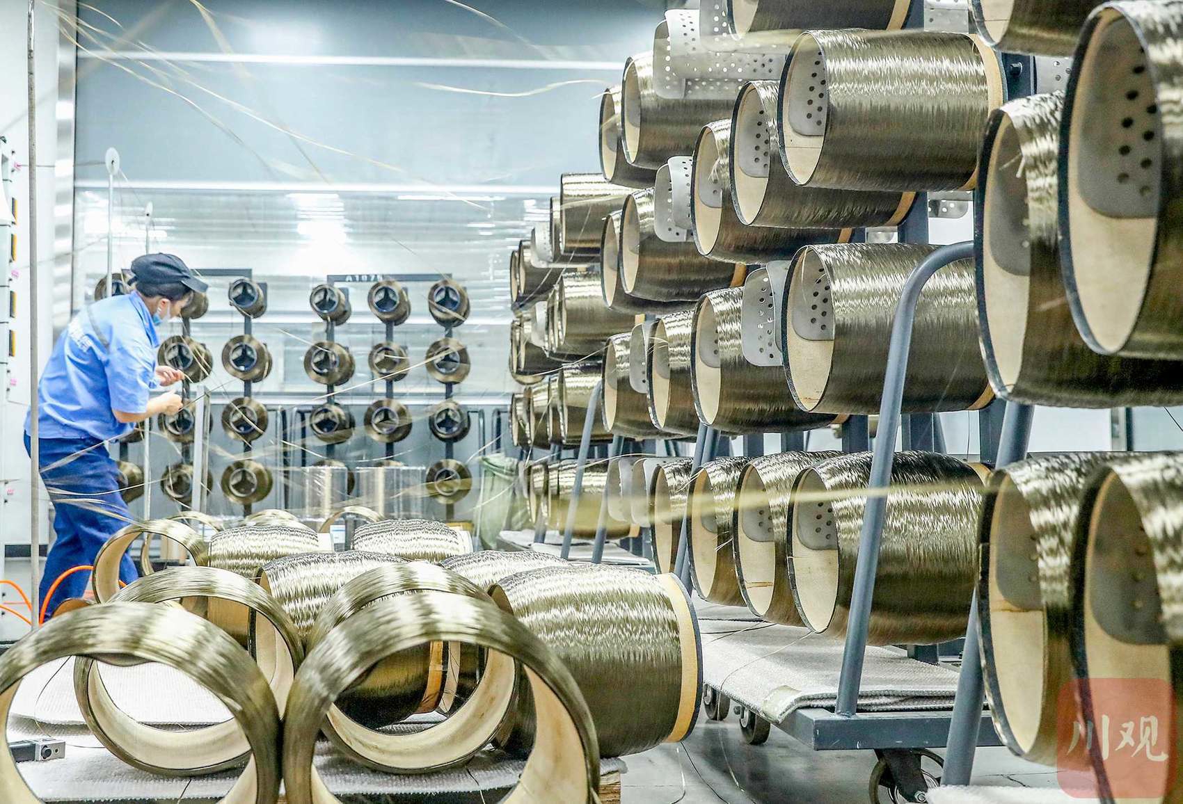 华蓥山经济开发区四川谦宜复合材料有限公司员工,在络纱车间赶制 “华蓥造” 原丝。
