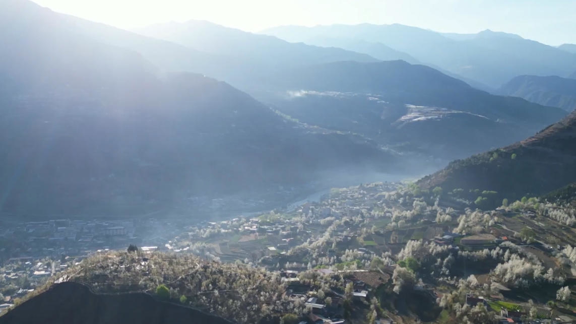 C视频|金川万亩梨花盛放 雪域河谷绘就春日盛景
